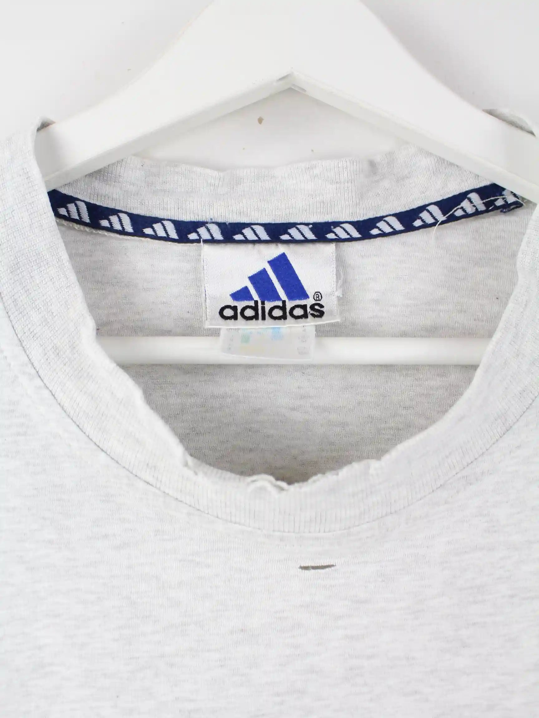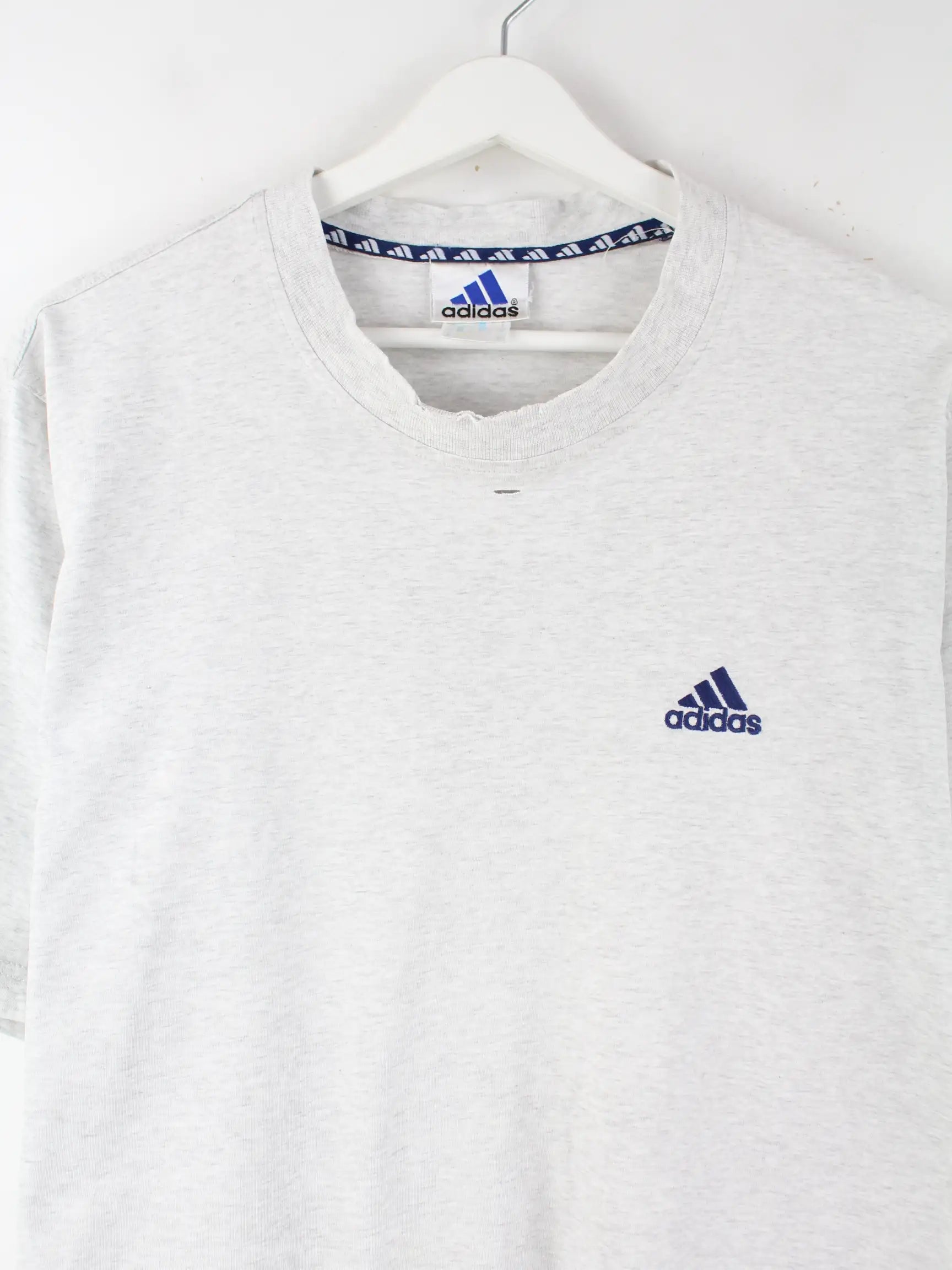 T-Shirt vom Brand Adidas in Größe L aus den 90'ern. Es ist aus einer Baumwollmischung hergestellt und in Grau im Angebot.