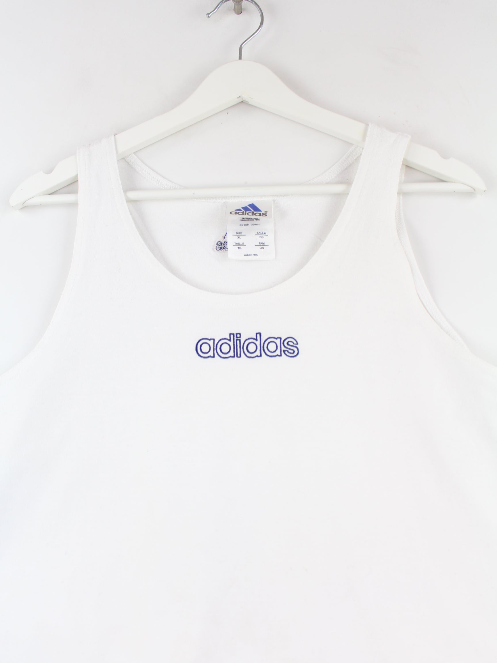 Weißer Tank Top vom Label Adidas aus den 90'ern in Größe XL. Er ist aus Baumwolle gemacht und in gutem Zustand lieferbar.