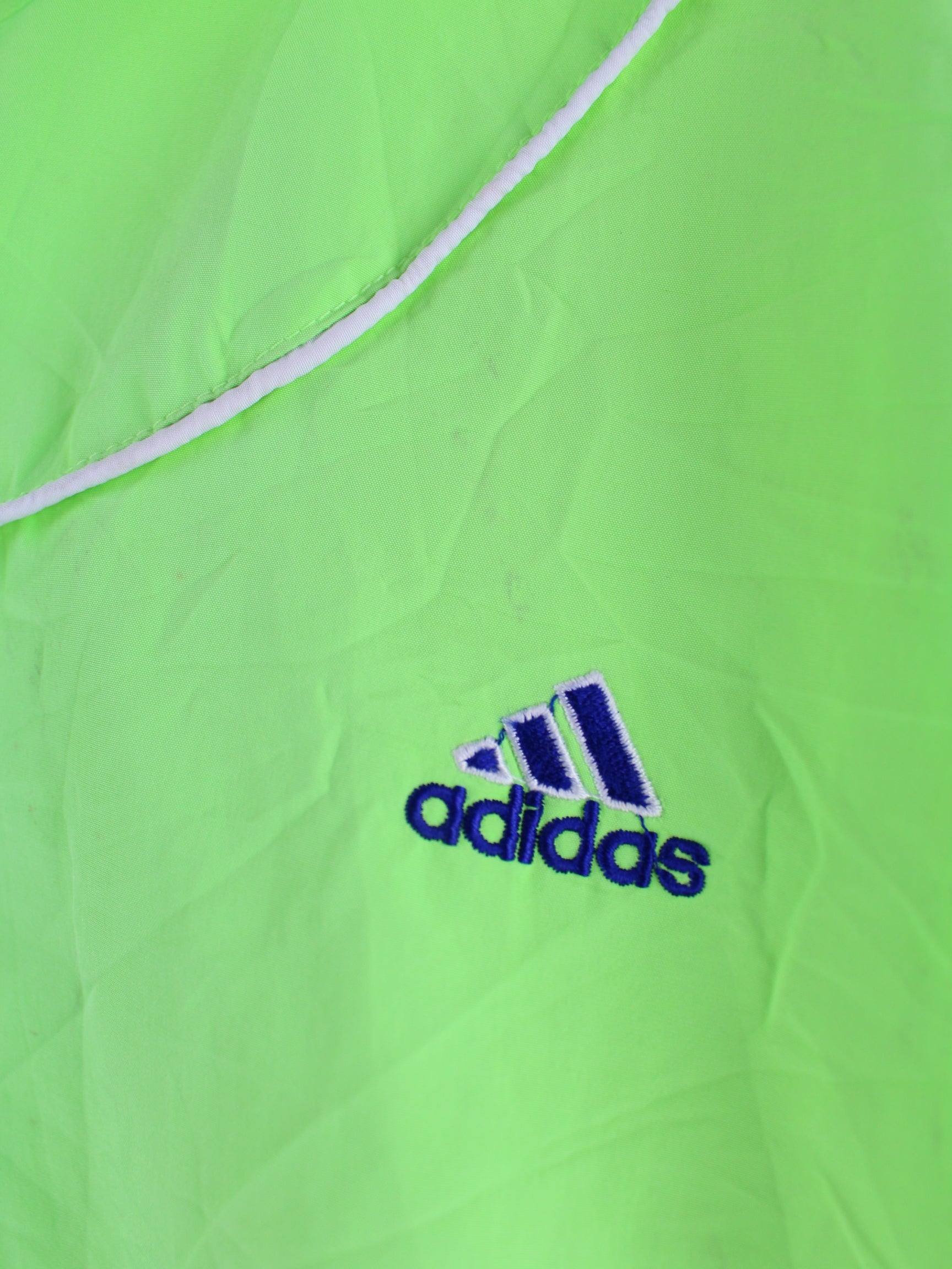Trainingsjacke vom Label Adidas in Größe XL aus den 90'ern. Sie ist aus Synthetik angefertigt und in Grün bei uns zu bekommen.