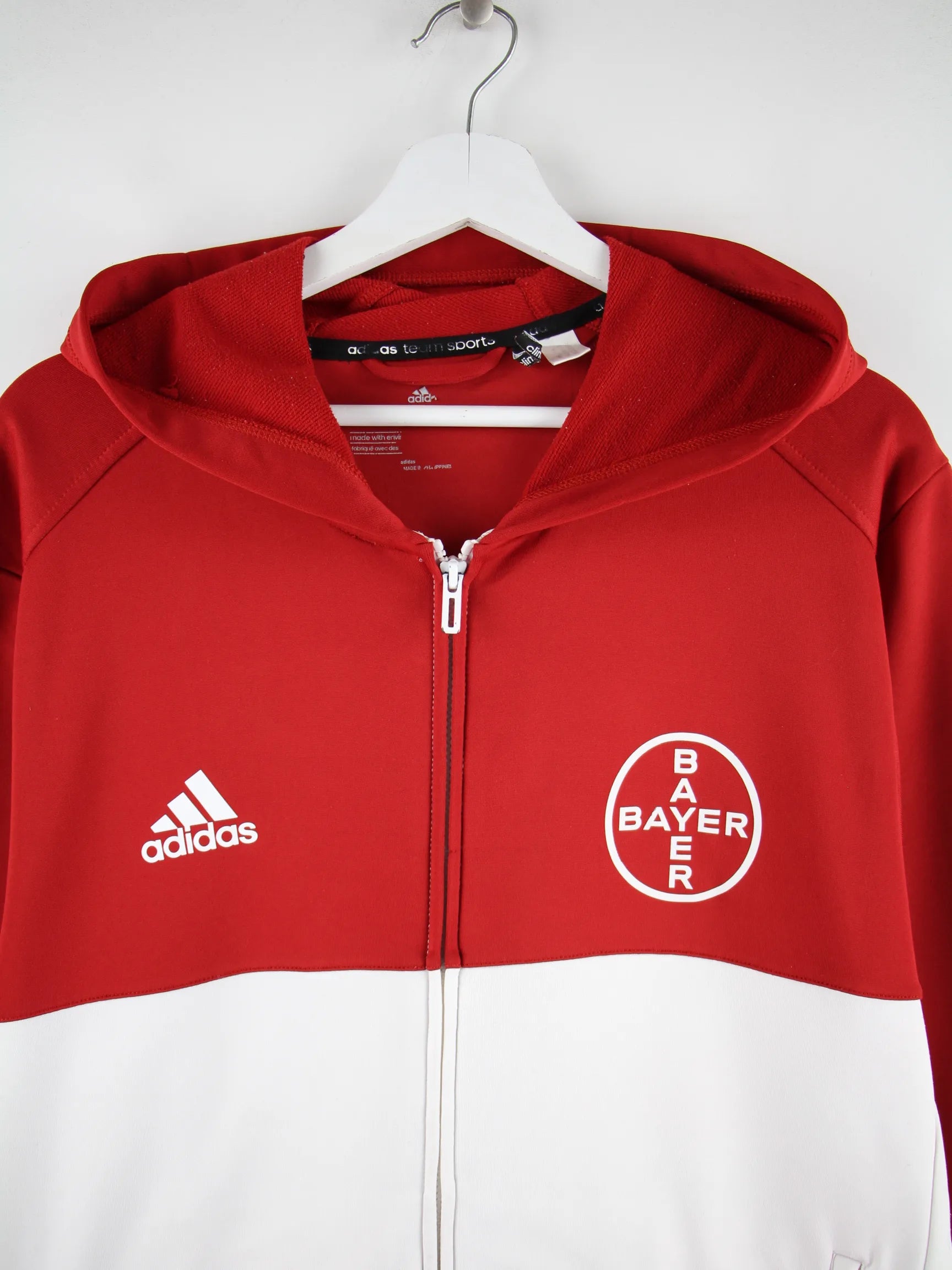 Hoodie der Brand Adidas mit langem Reißverschluß in Größe XL. Er ist aus Synthetik angefertigt und in Rot auf Lager. Mit tollem undefined Print.