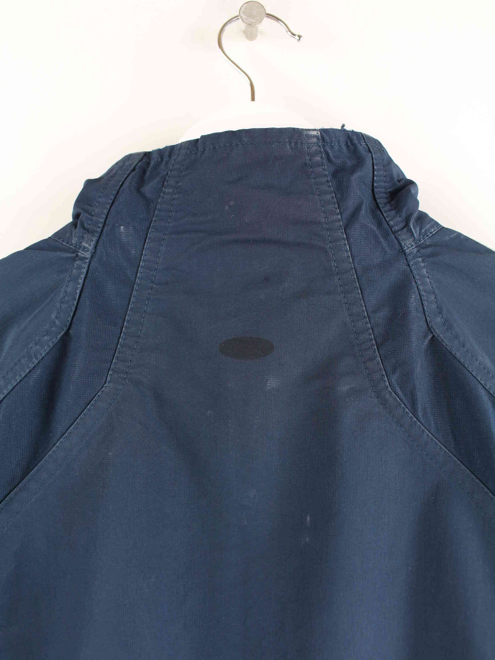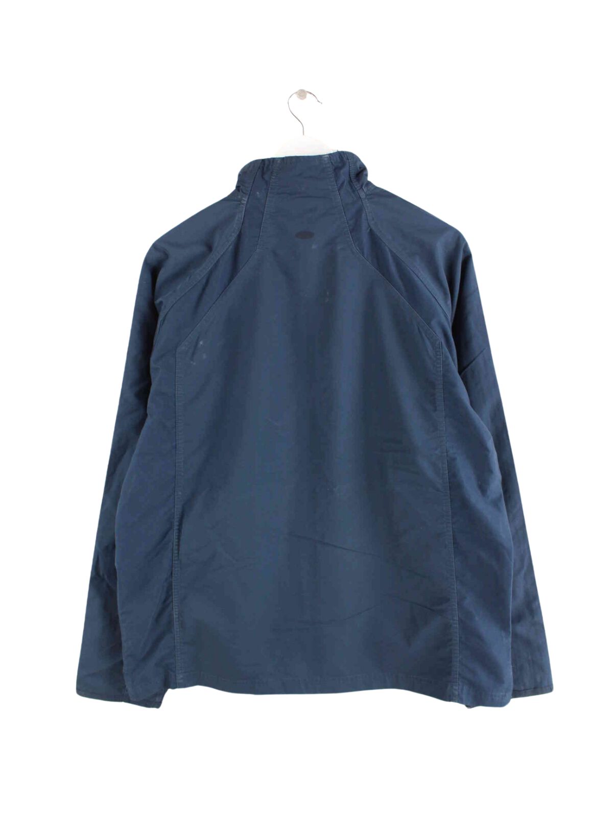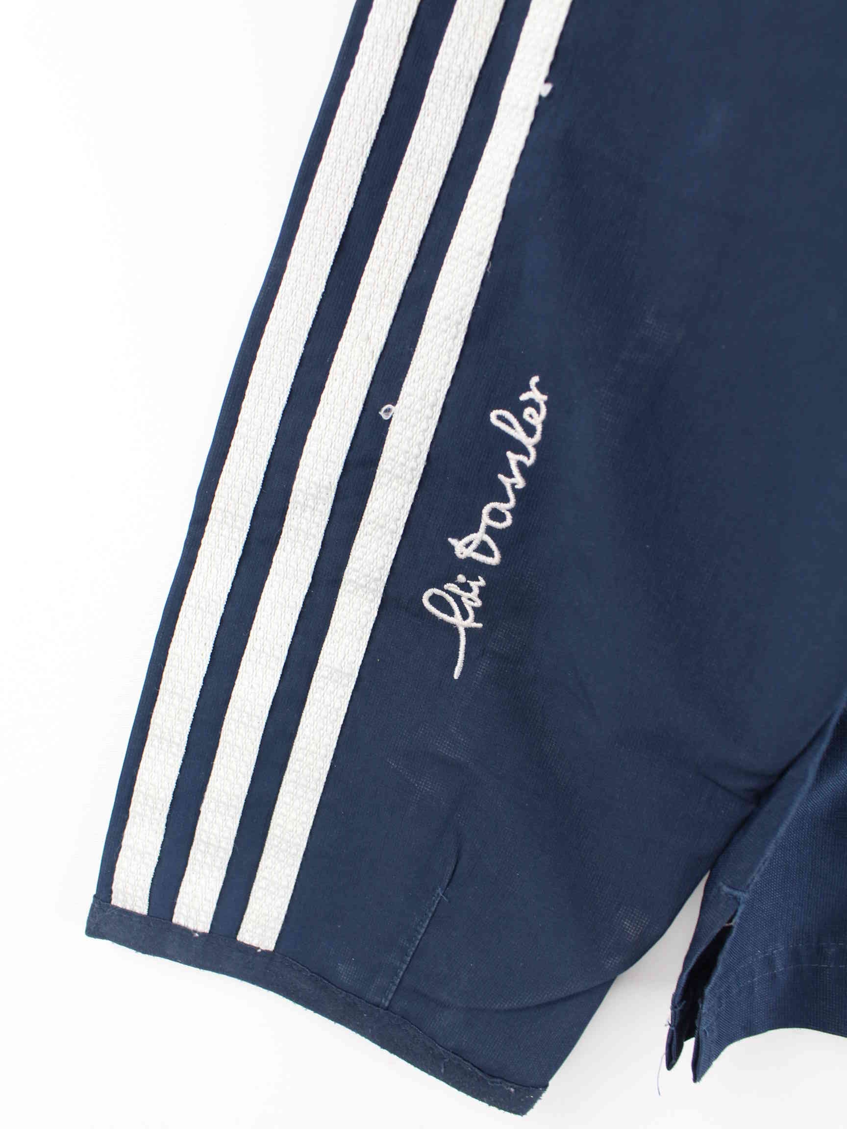Blaue Trainingsjacke des Labels Adidas aus Anfang der 2000'er in Größe L. Sie ist aus Synthetik hergestellt und in gutem Zustand bei uns zu bekommen.