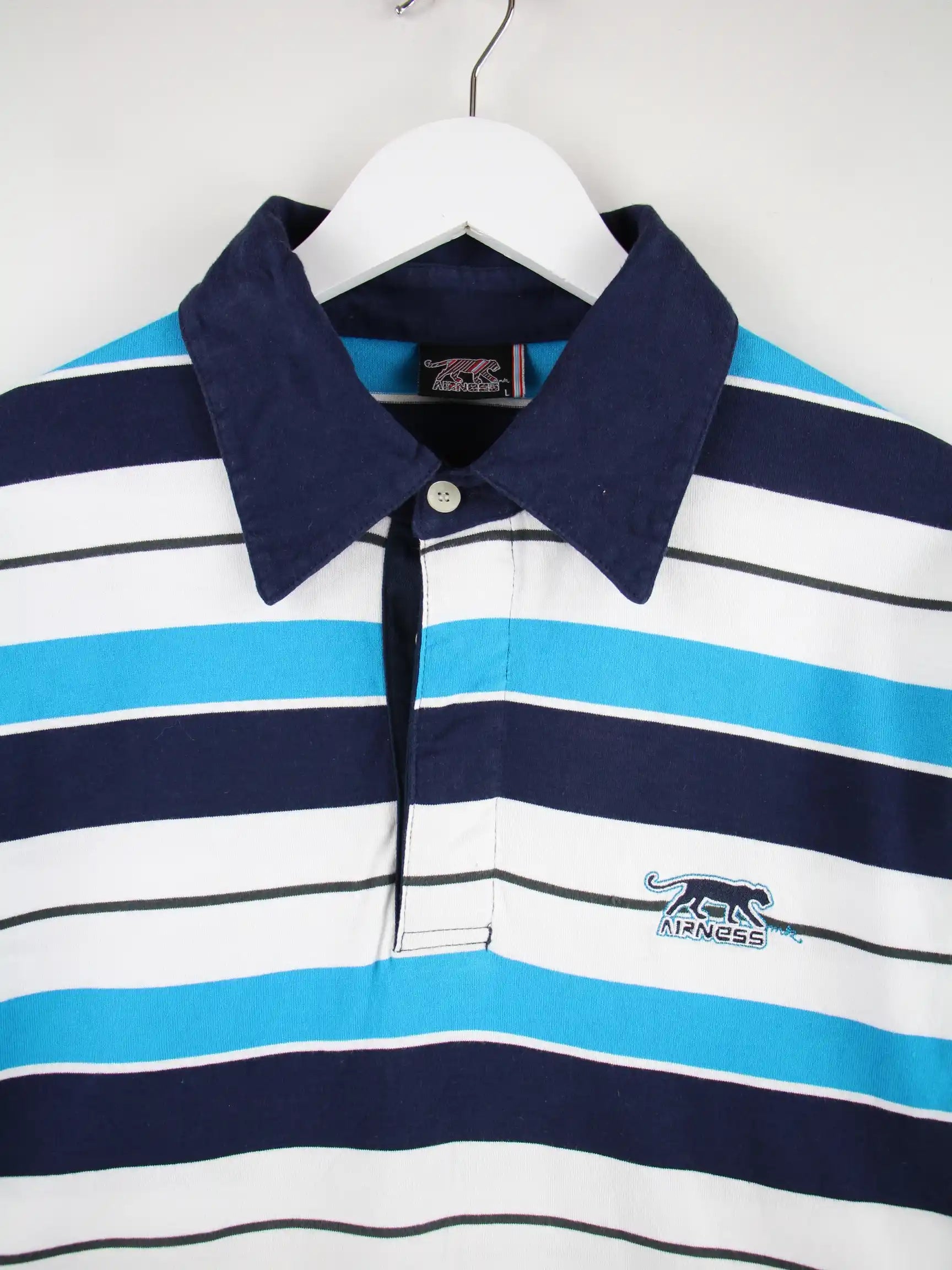 Blaues Poloshirt aus dem Hause Airness in Größe L. Es ist aus Baumwolle gefertigt und in sehr gutem Zustand auf Lager.