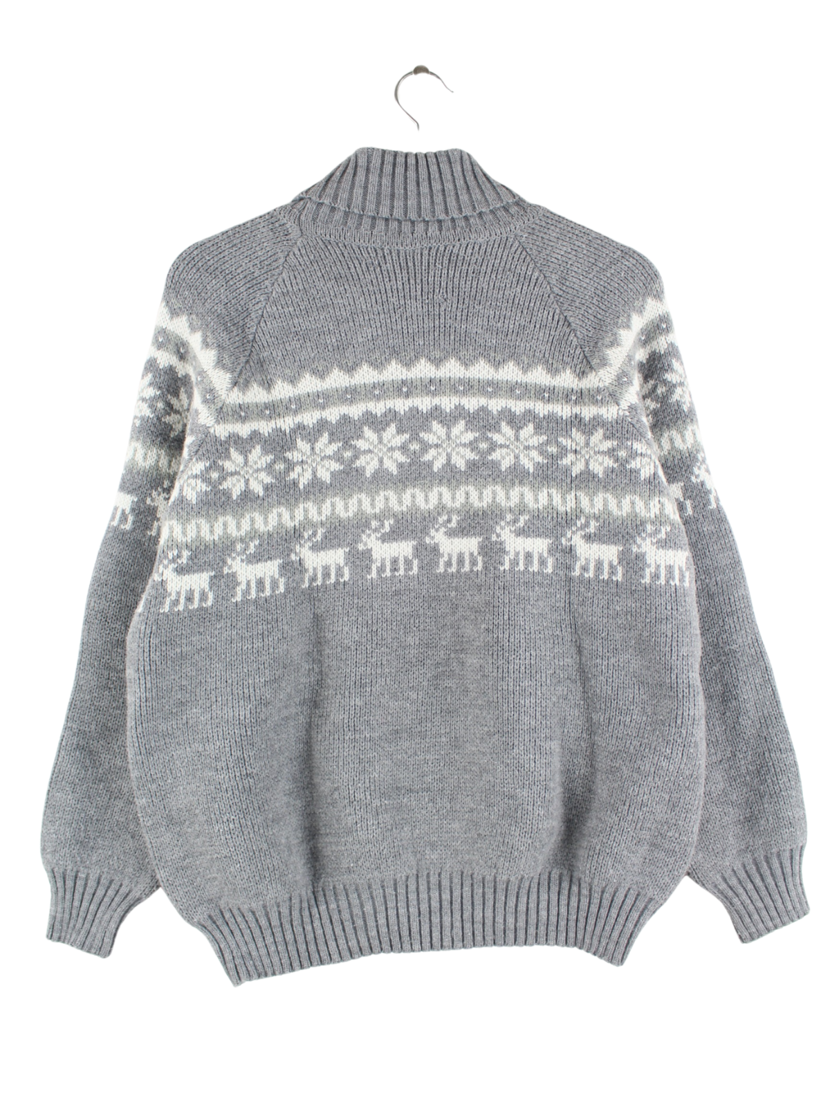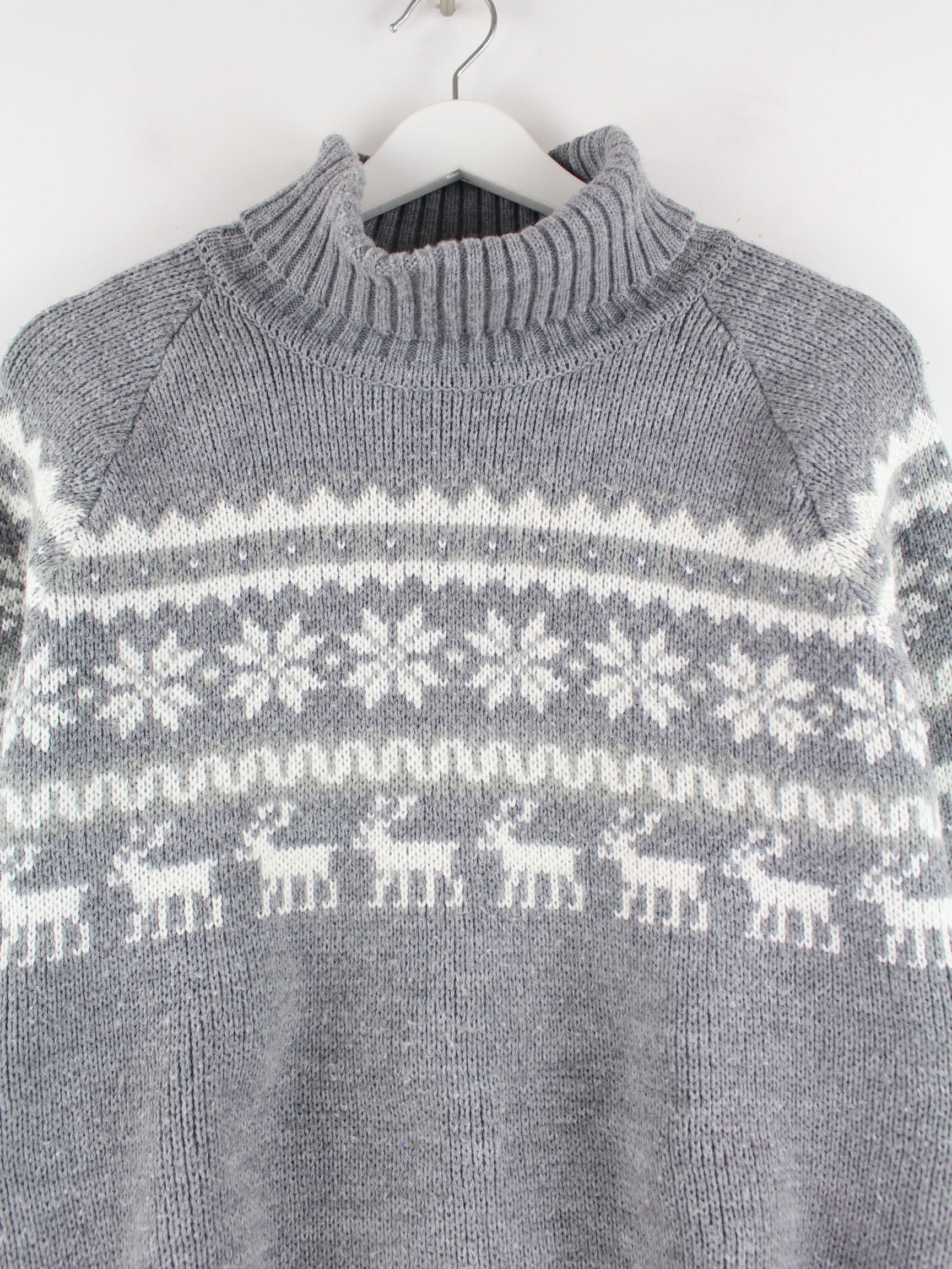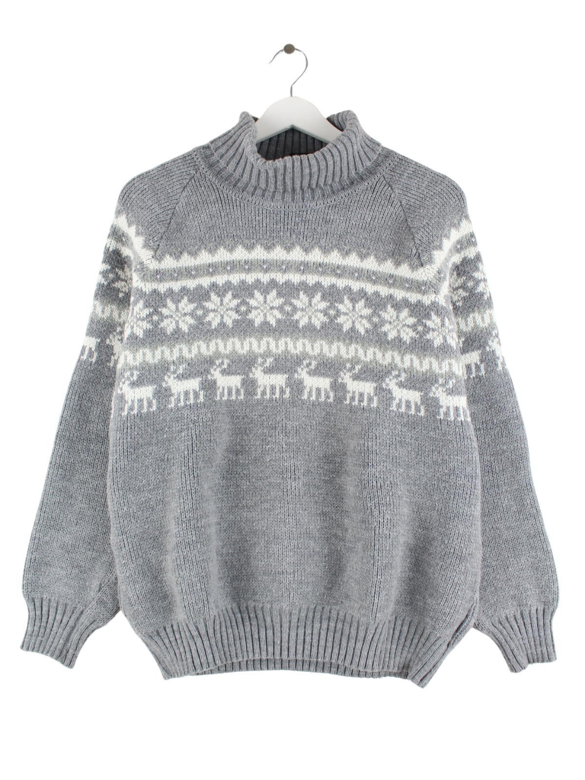 Vintage Damen 80s Vintage Rollkragen Pullover Grau L