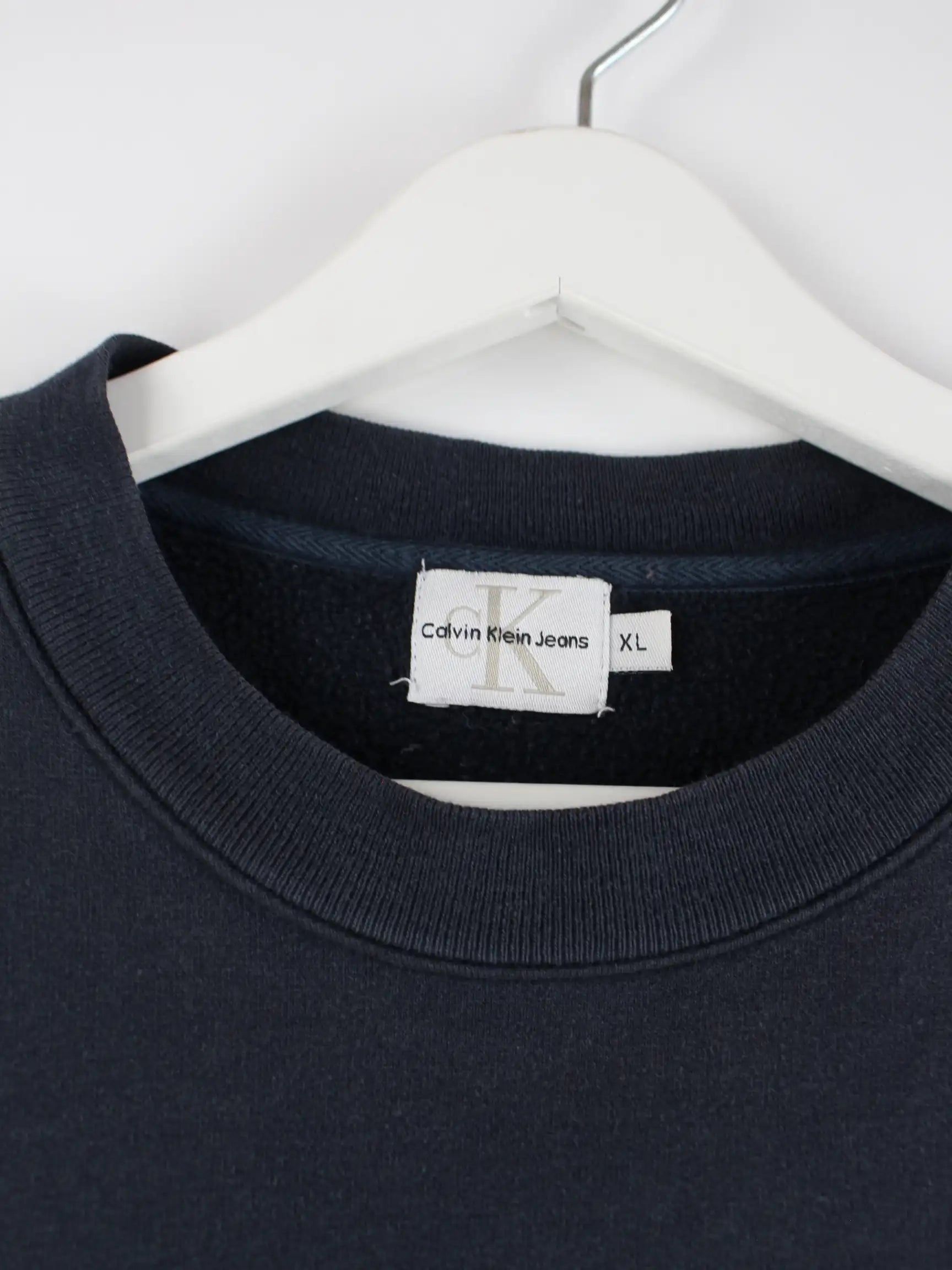 Sweater der Marke Calvin Klein in Größe XL aus den 90'ern. Er ist aus einer Baumwollmischung gemacht und in Schwarz lieferbar.
