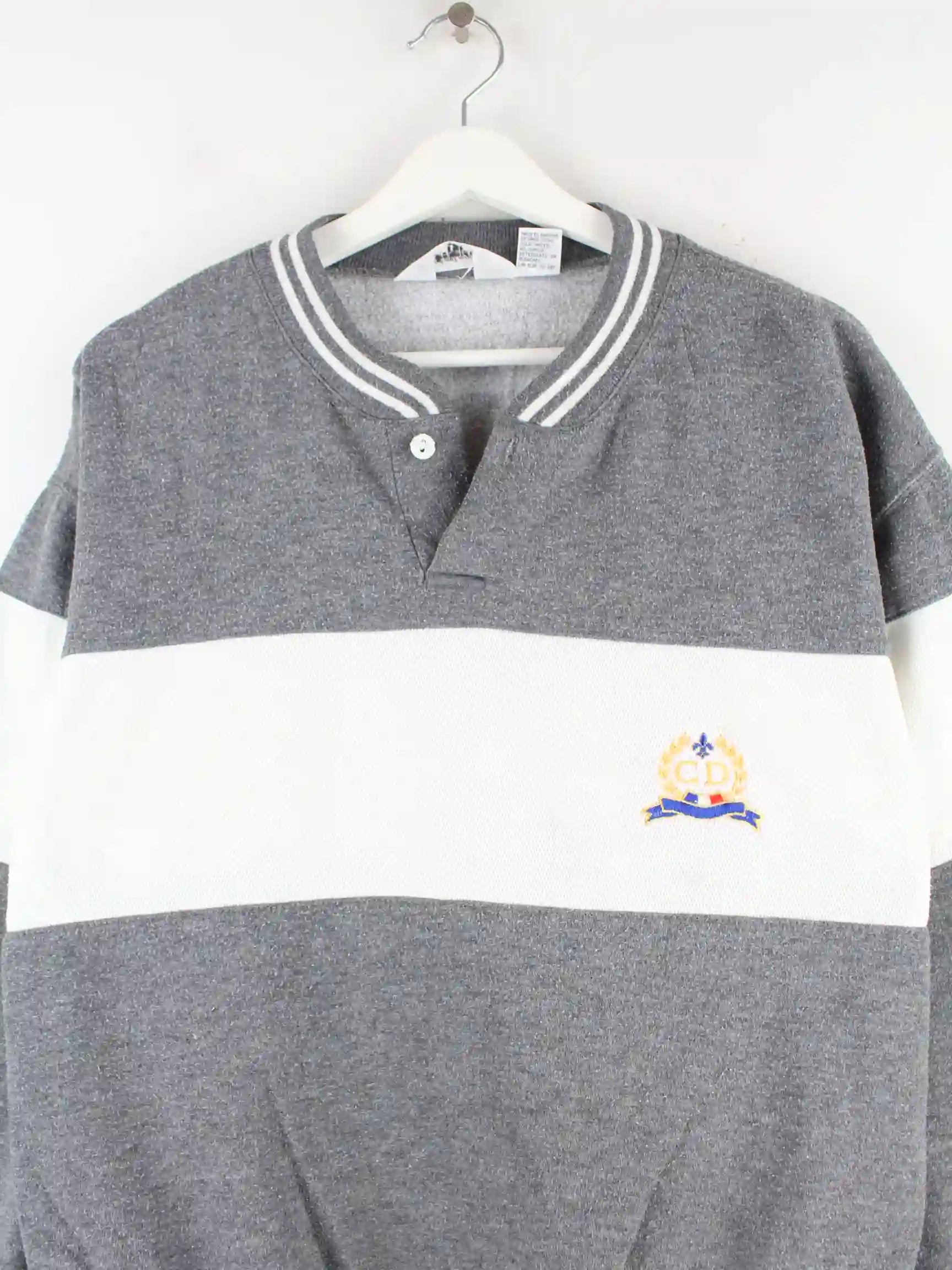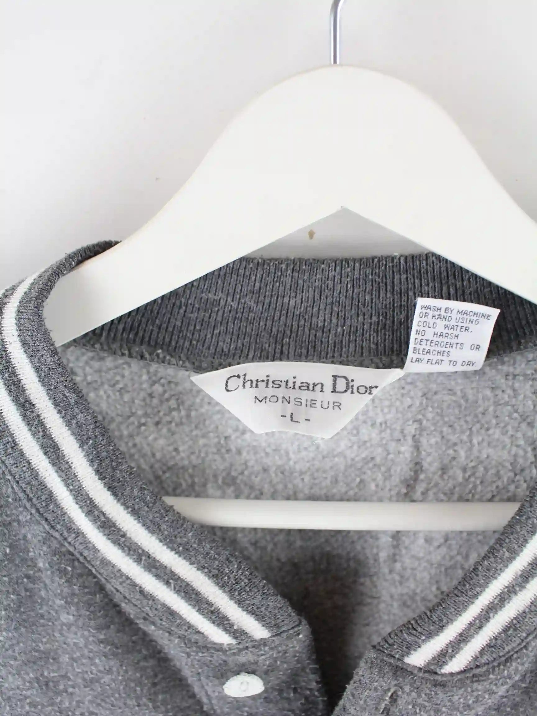 Grauer Sweater mit gesticktem Logo von Christian Dior aus den 80'ern in Größe M. Er ist aus einer Baumwollmischung hergestellt und in gutem Zustand in Stock.