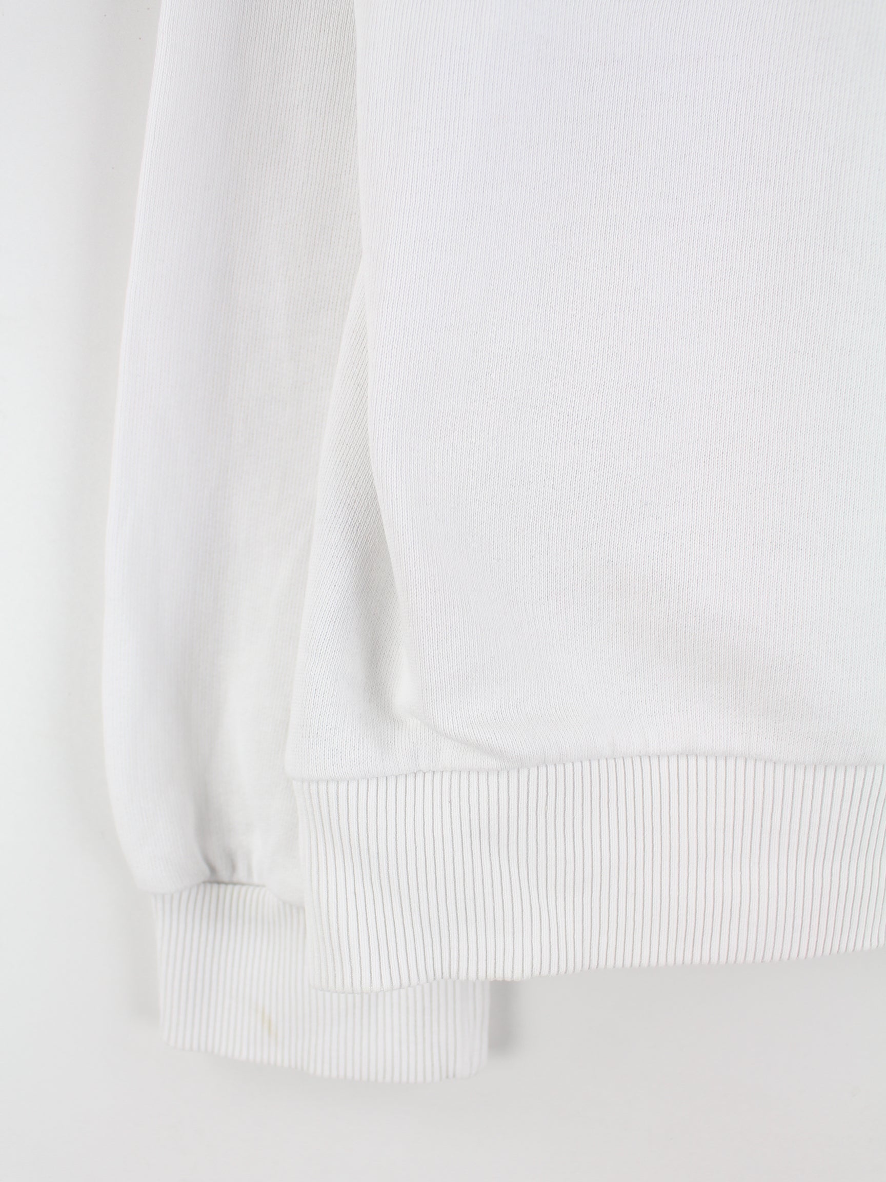 Weißer Sweater mit gestickten Motiven des Labels Fila in Größe S. Er ist aus einer Baumwollmischung und in gutem Zustand bei uns vorrätig.