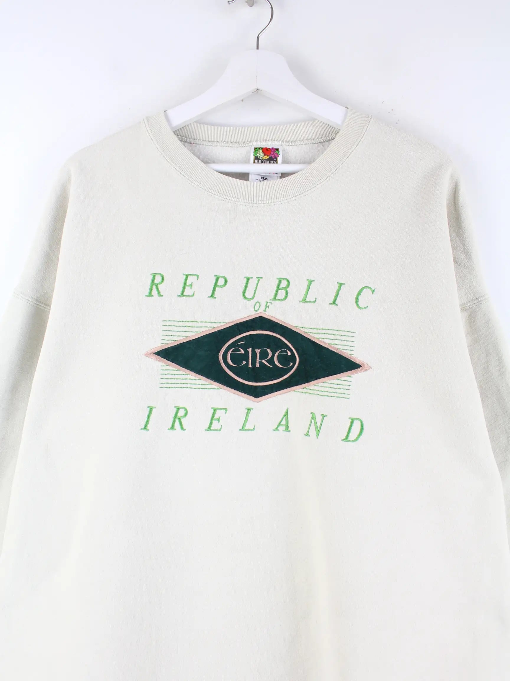 Fruit of the Loom 90s Vintage Ireland Embroidered Heavy Sweater Beige XXL