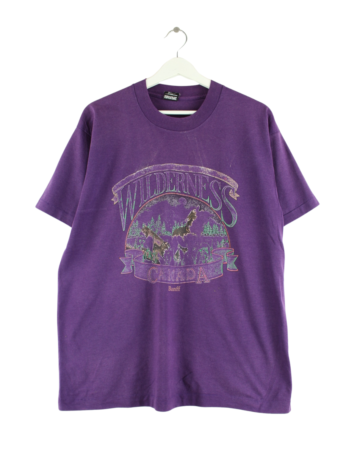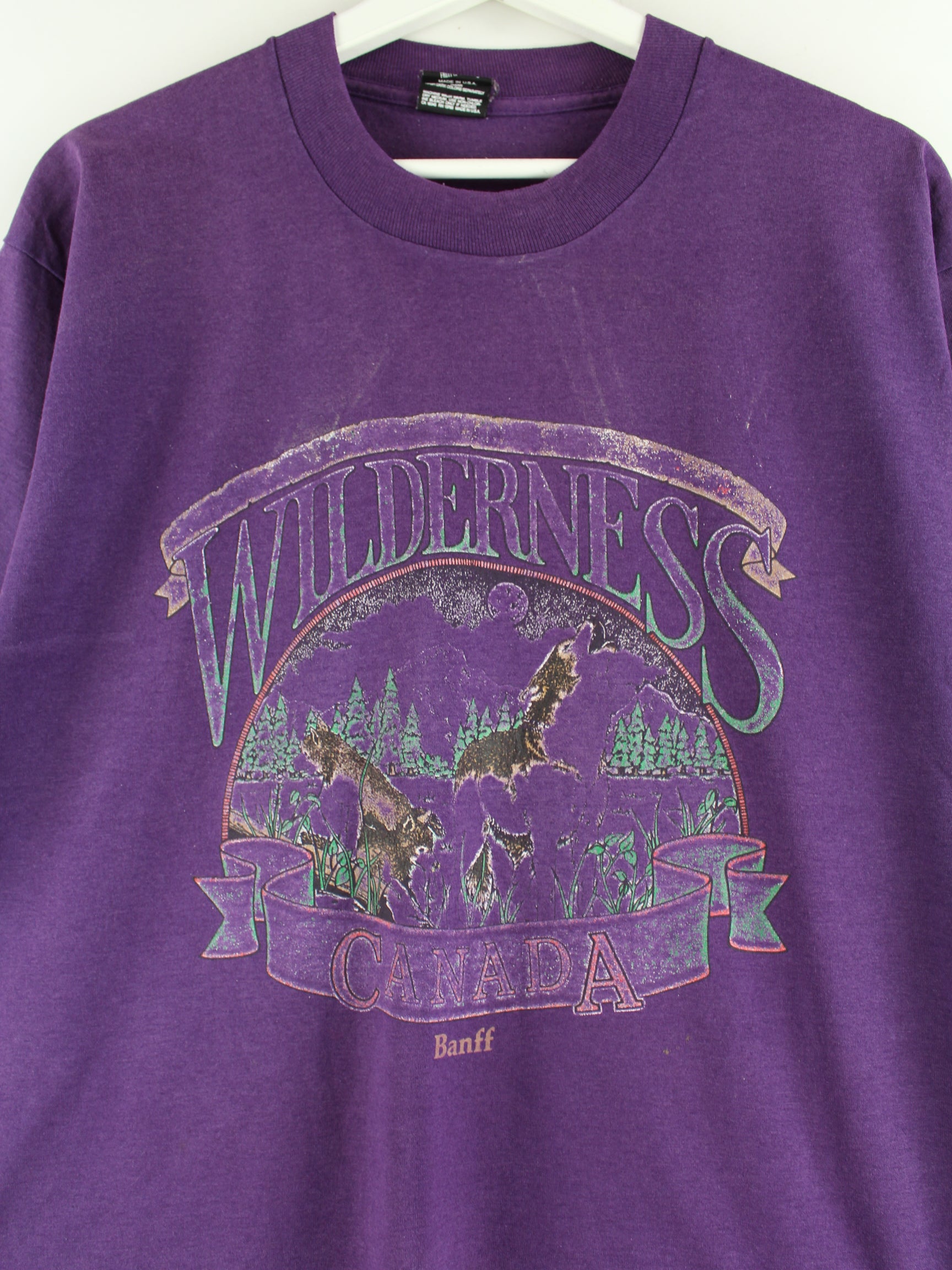 Fruit of the Loom 90s Vintage Wilderness Print Single Stitch T-Shirt Lila L