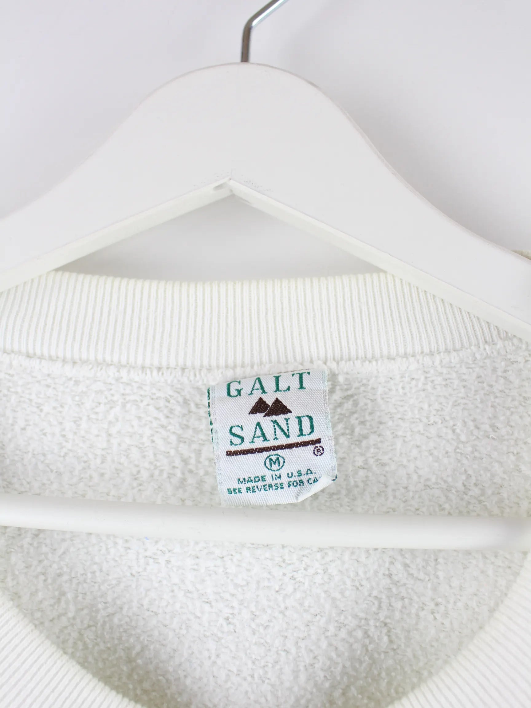 Weißer Sweater der Marke Galt Sand aus den 90'ern in Größe M. Er ist aus einer Baumwollmischung angefertigt. Den Zustand würden wir als 'In Ordnung' bezeichnen (vergl. Bilder).