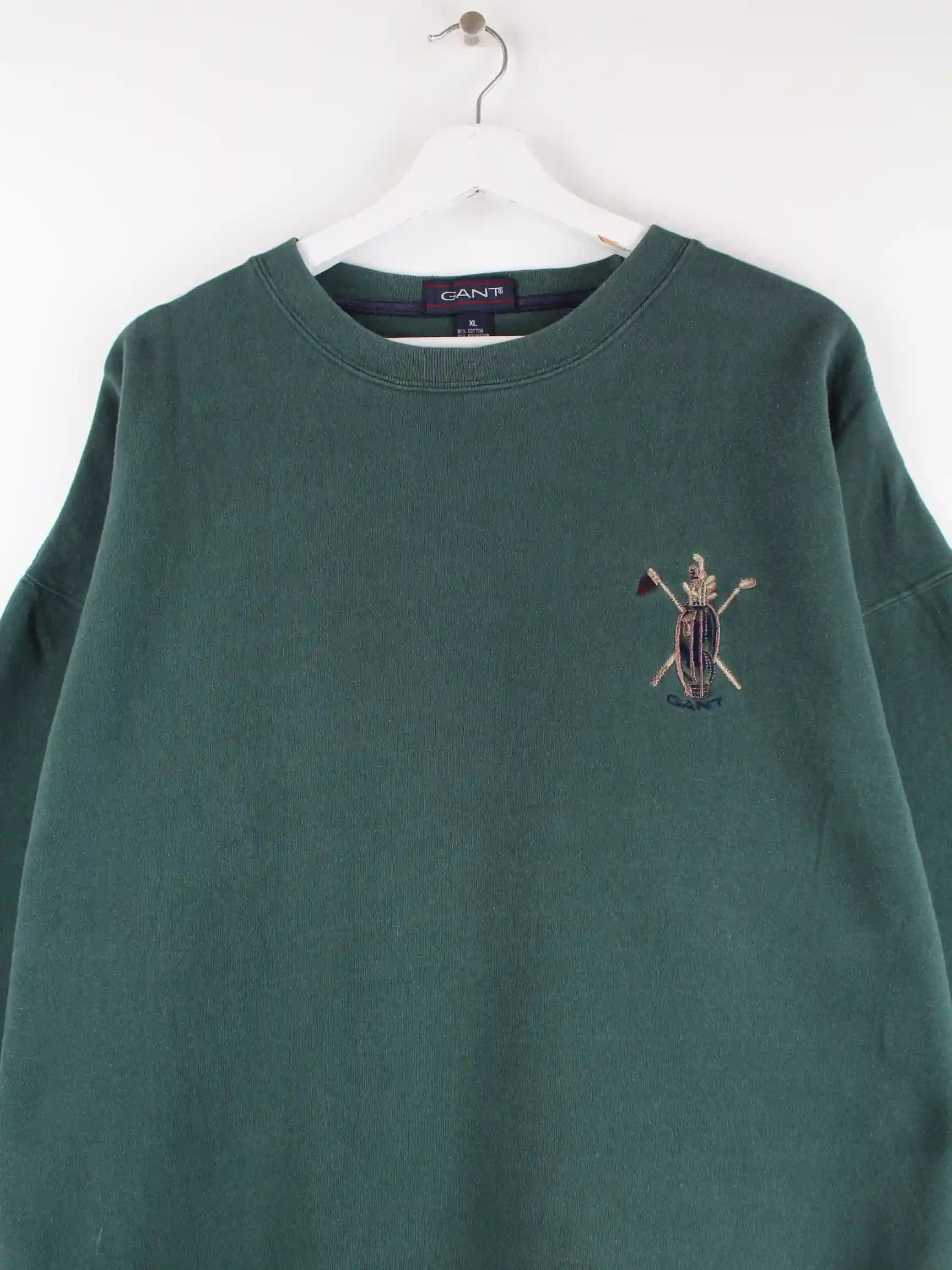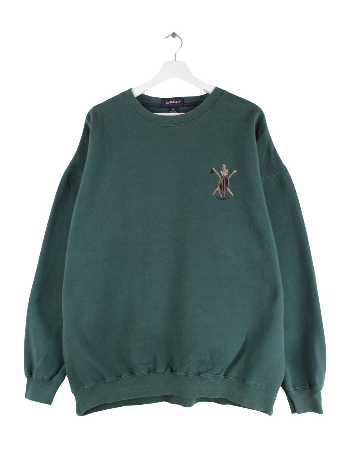 Vintage Golf Sweater der Marke Gant in Größe XL. Er ist aus einer Baumwollmischung produziert und in Dunkelgrün bei uns zu bekommen.