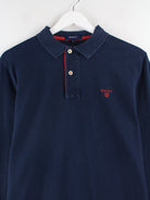 Blaues Poloshirt des Labels Gant in Größe M. Es ist aus Baumwolle und in gutem Zustand in Stock.