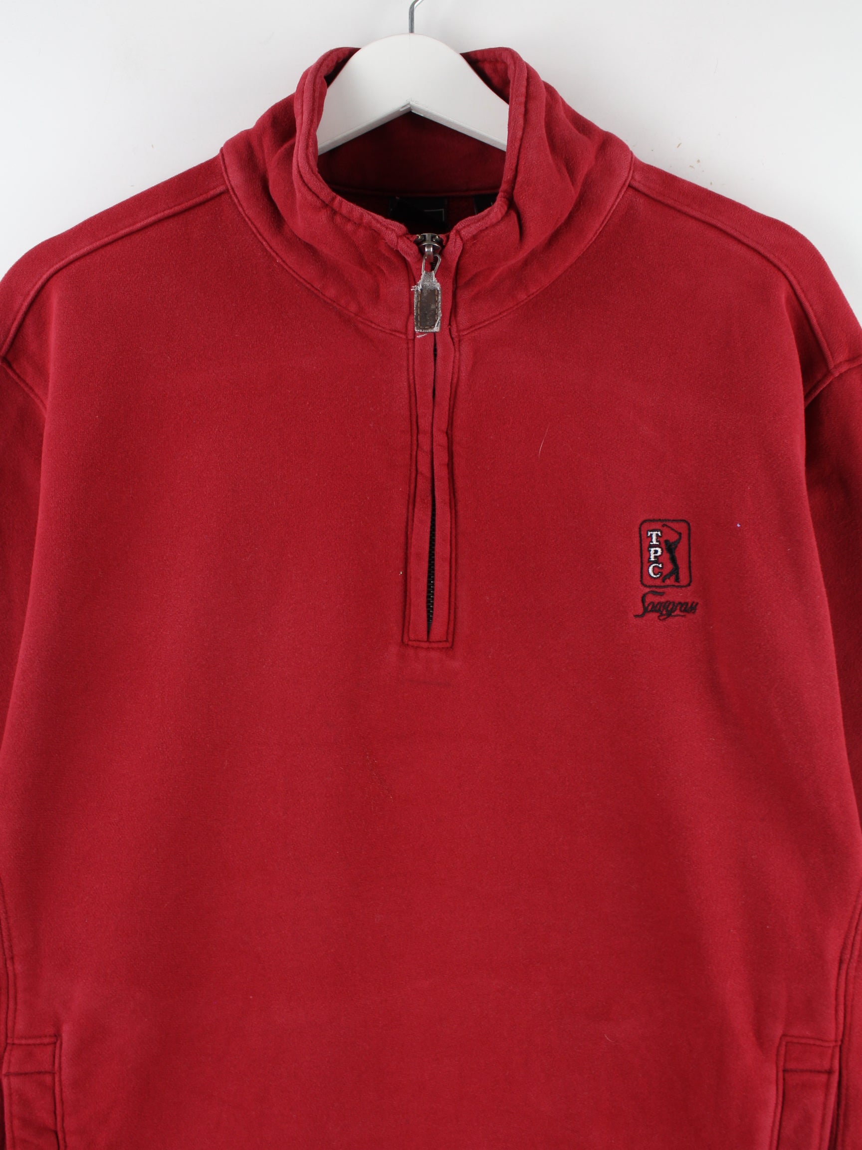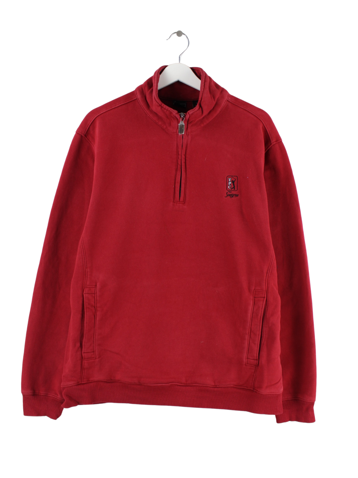 Sweater vom Label Gear for Sports mit gestickten Motiven und half Zip in Größe L. Er ist aus einer Baumwollmischung angefertigt und in Rot zu bekommen.