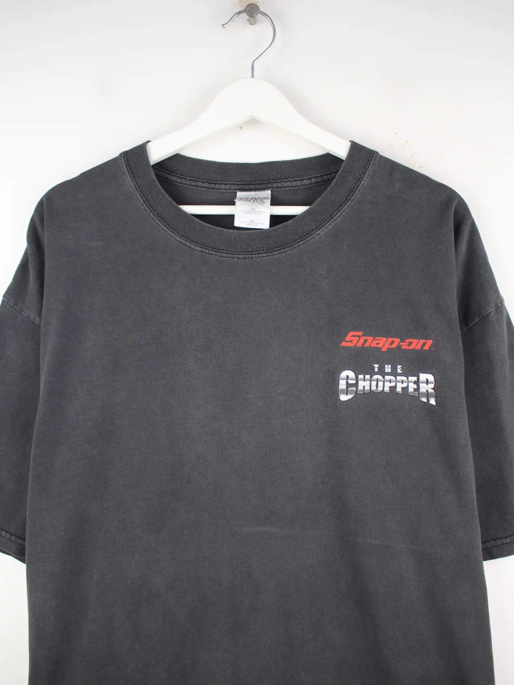 T-Shirt vom Label Gildan in Größe XL. Es ist aus Baumwolle gemacht und in Schwarz auf Lager. Mit tollem Chopper Print.