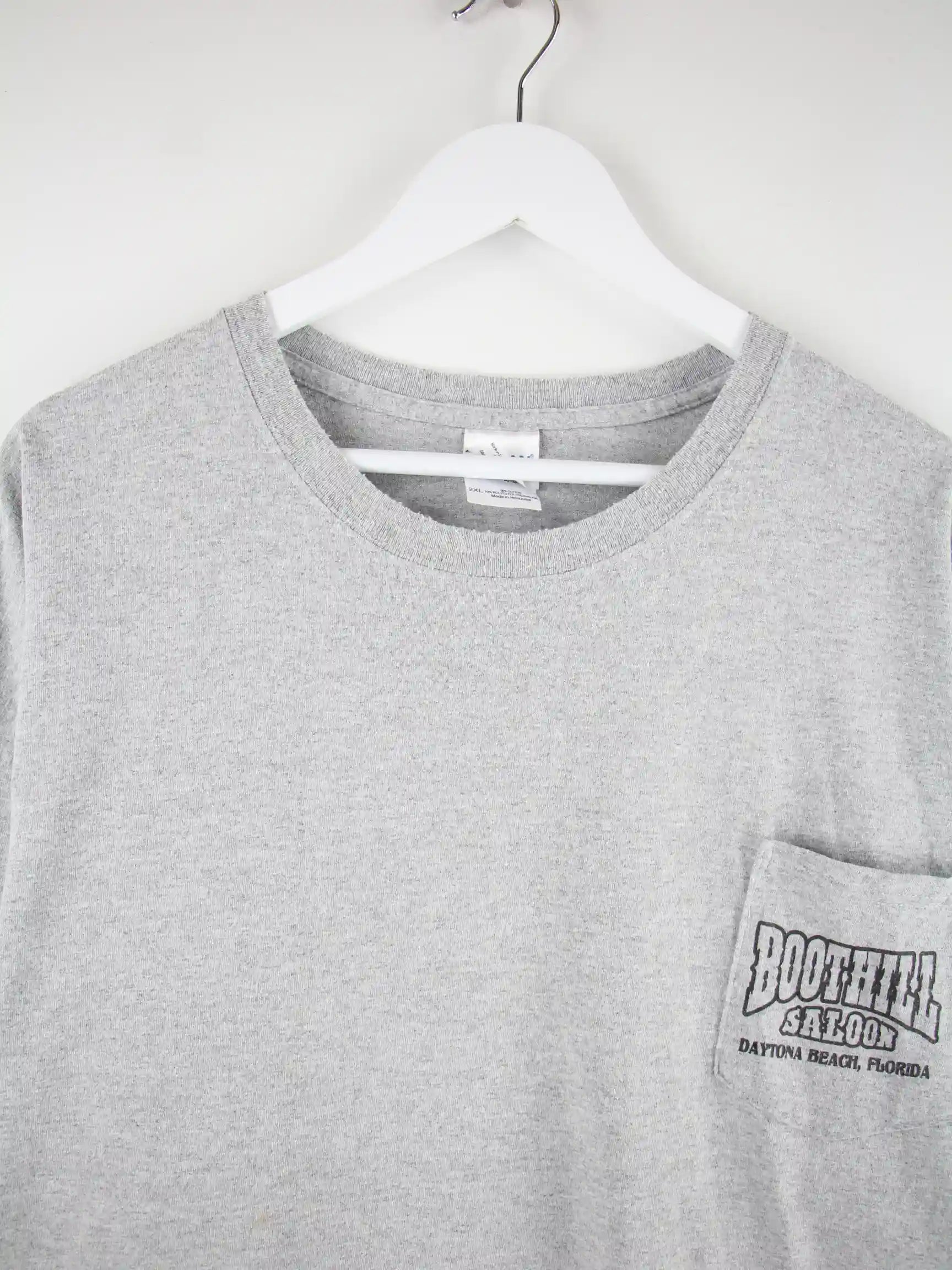 T-Shirt der Marke Gildan in Größe XXL. Es ist aus Baumwolle angefertigt und in Grau auf Lager. Mit seltenem Florida Print.