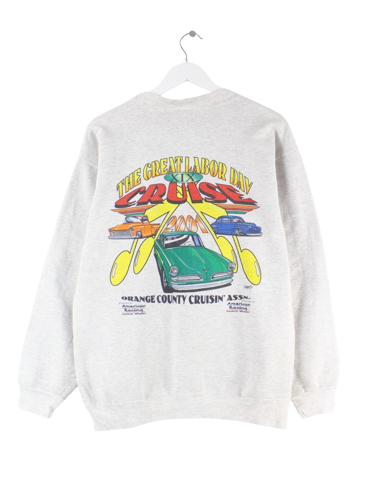 Sweater der Brand Hanes in Größe XL. Er ist aus einer Baumwollmischung gefertigt und in Grau zu haben. Mit seltenem Cruising Print.