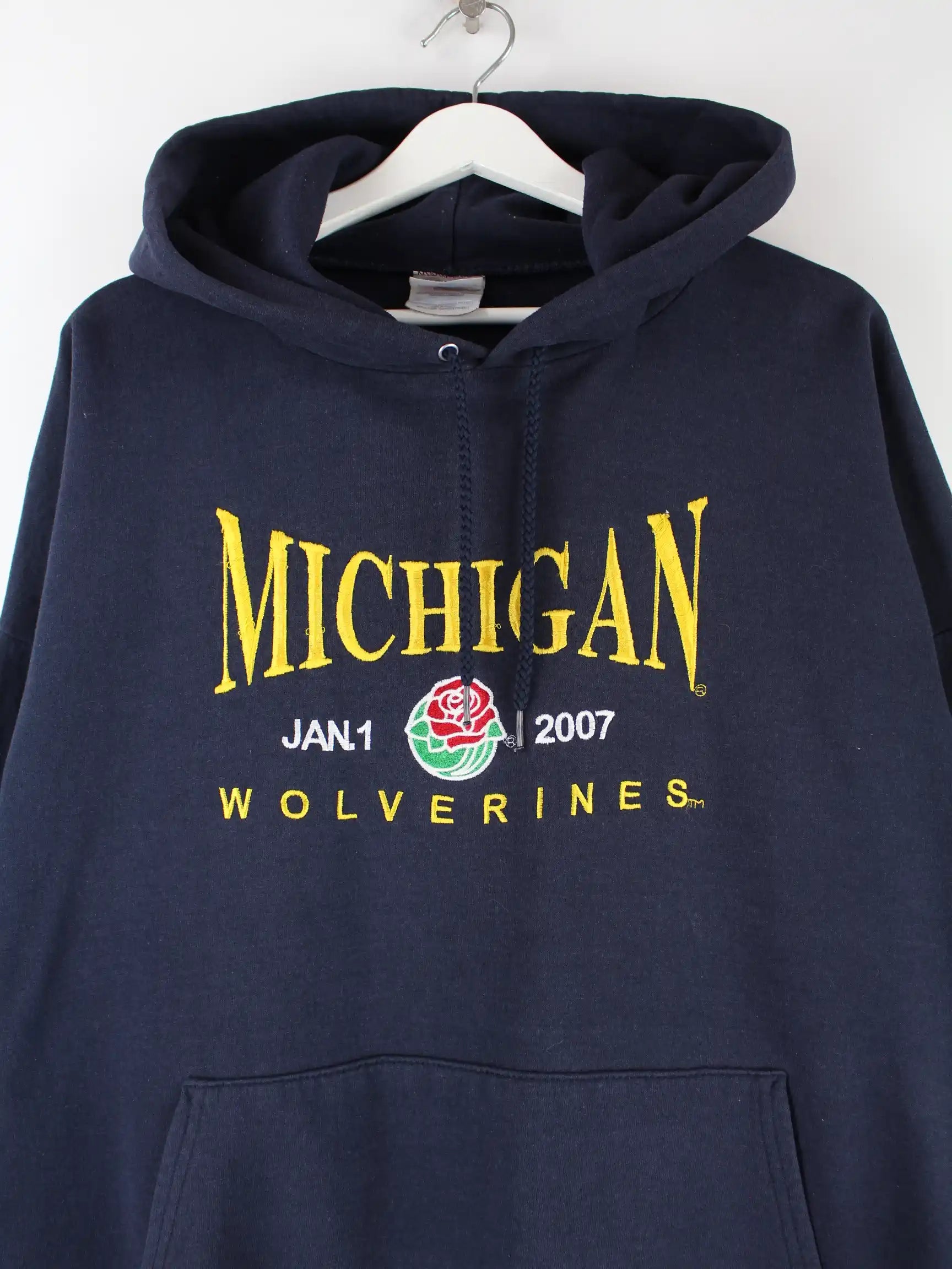 Hanes 2007 Michigan Wolverines Embroidered Hoodie Blau XL