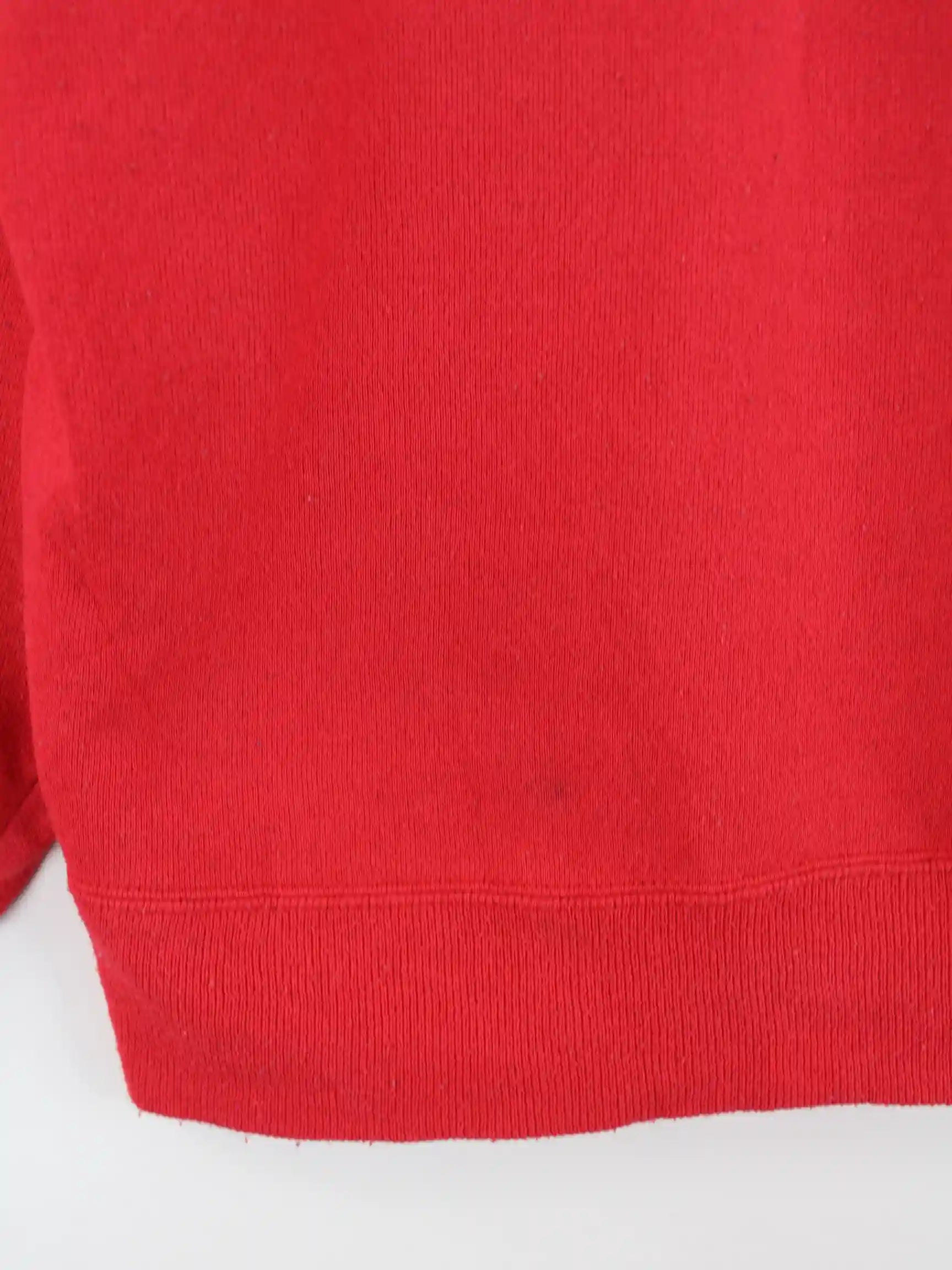 Roter Sweater mit gestickten Motiven von Hanes aus den 90'ern in Größe M. Er ist aus einer Baumwollmischung . Den Zustand würden wir als 'In Ordnung' bezeichnen (vergl. Bilder).