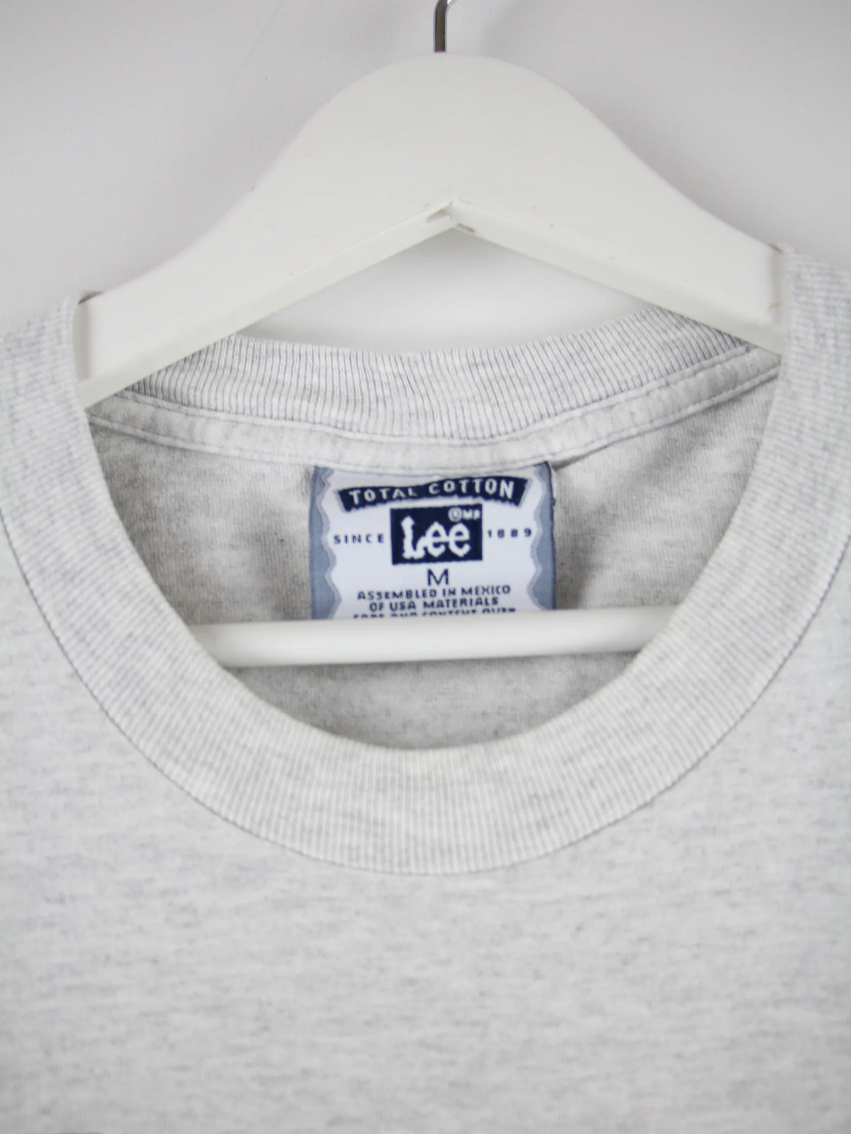 Graues T-Shirt aus dem Hause Lee aus den 90'ern in Größe M. Es ist aus Baumwolle angefertigt und in gutem Zustand in Stock. Mit seltenem Giants Print.