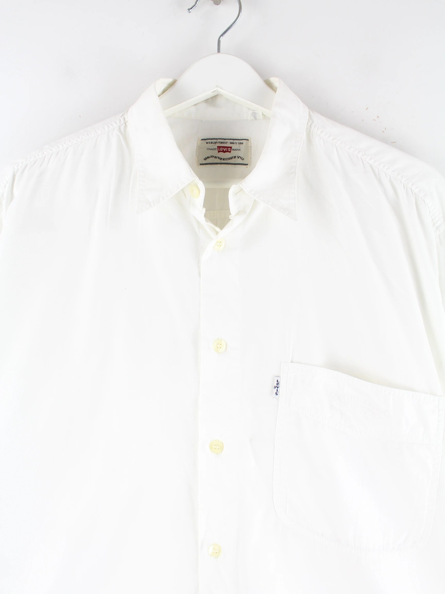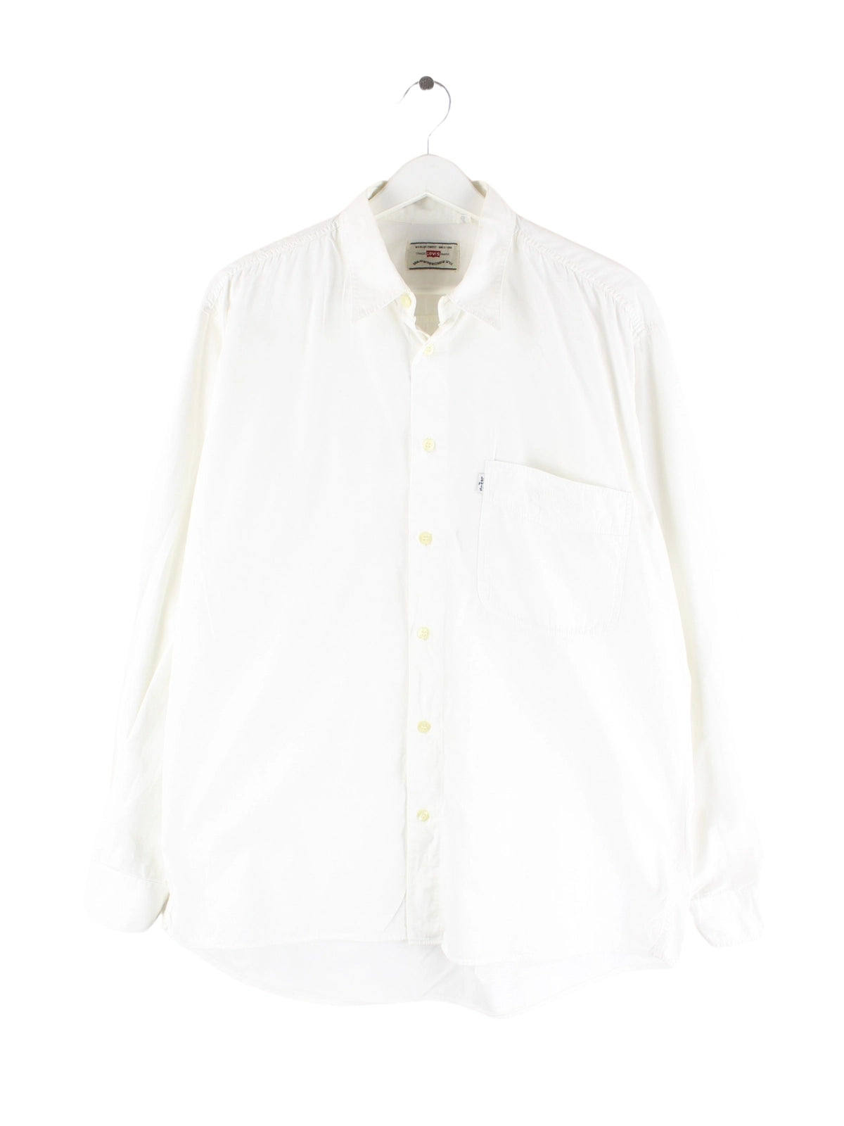 Hemd der Marke Levi's in Größe L aus den 90'ern. Es ist aus Baumwolle gefertigt und in Weiß zu haben.