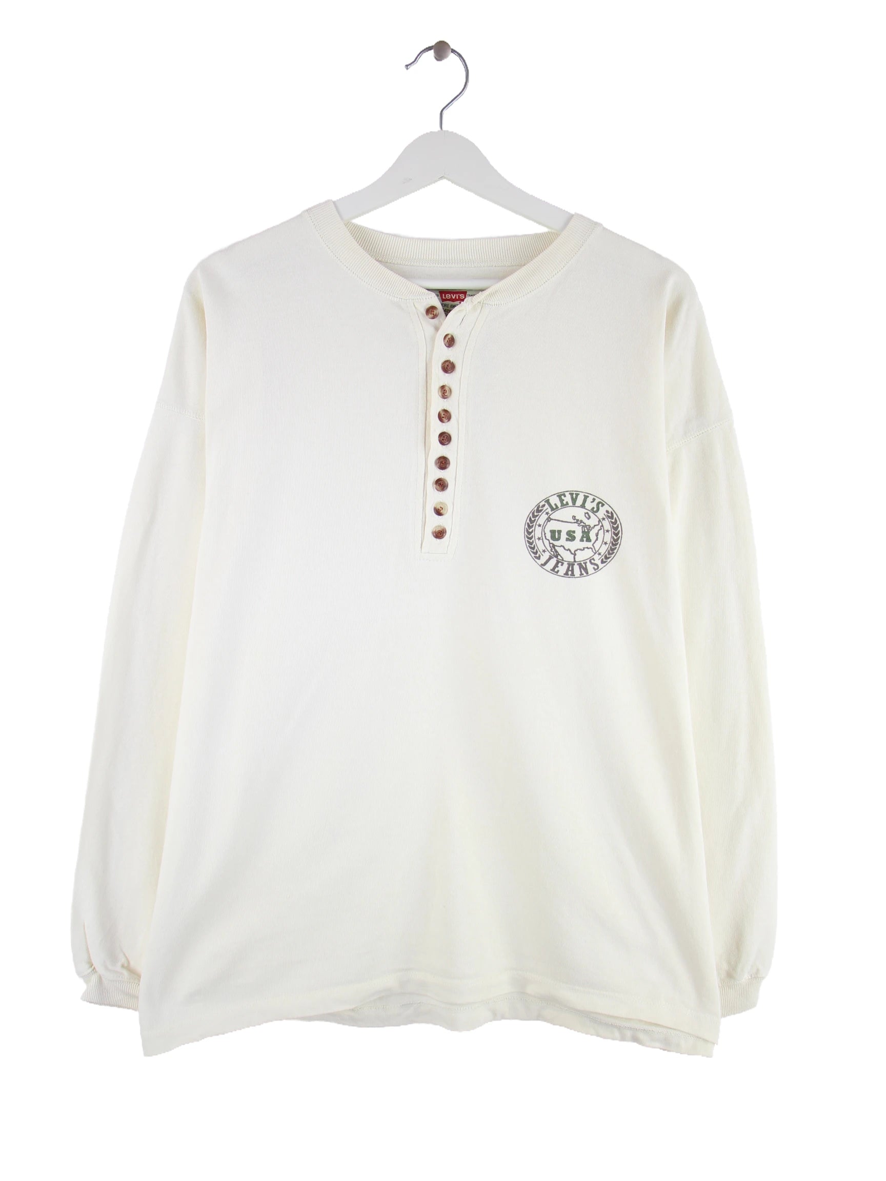 Sweatshirt vom Brand Levi's in Größe XL aus den 90'ern. Es ist aus Baumwolle hergestellt und in Weiß bei uns vorrätig.