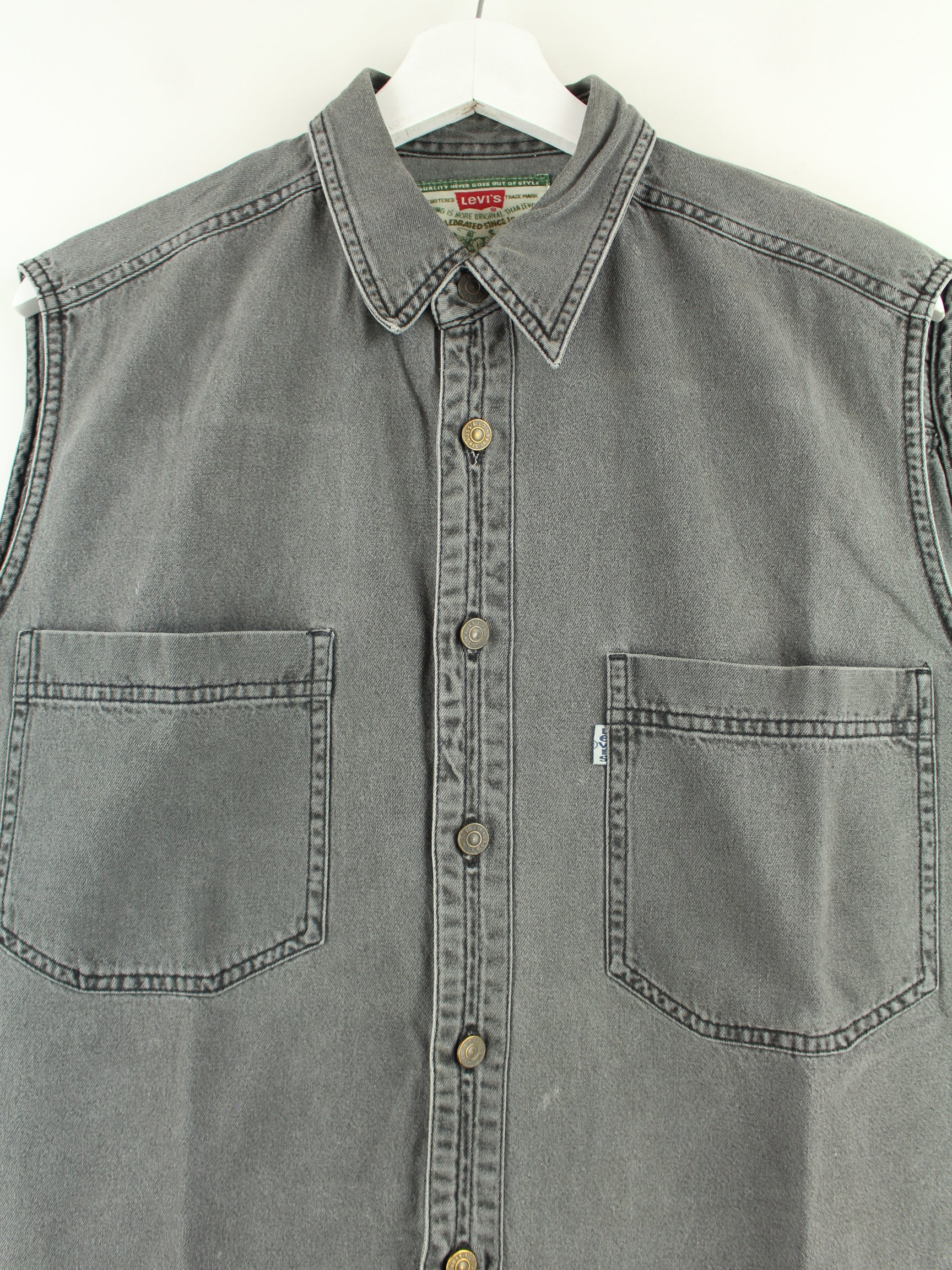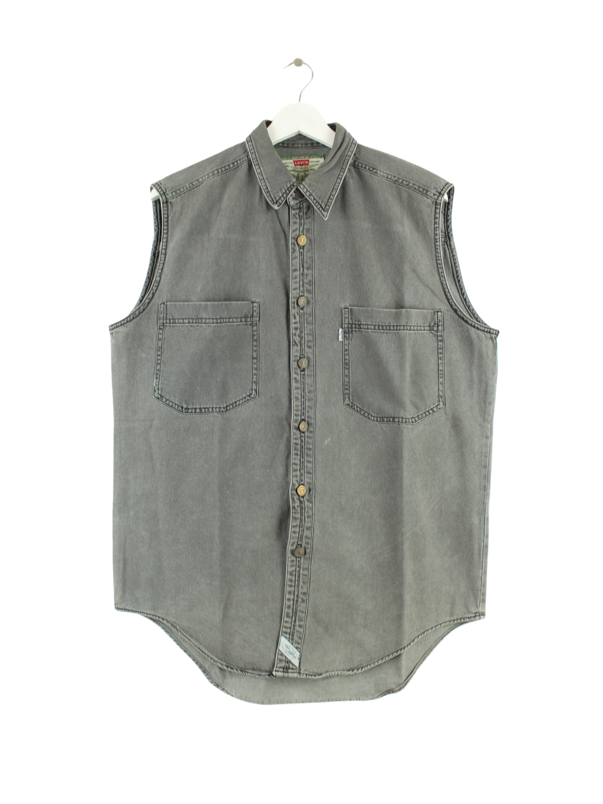 Graues Freizeit Hemd des Labels Levi's aus den 90er Jahren in Größe L. Es ist aus Baumwolle hergestellt und in gutem Zustand lieferbar.