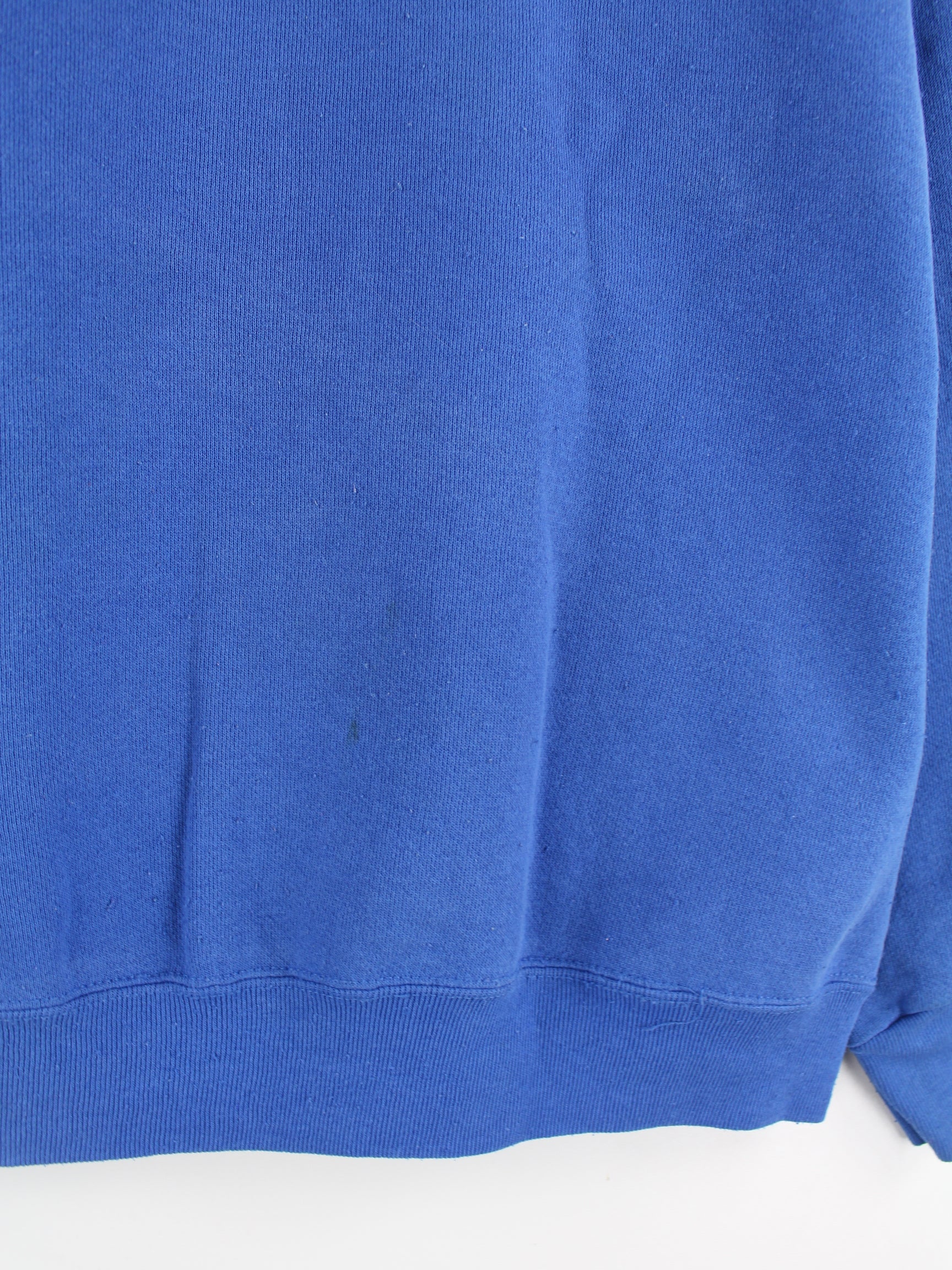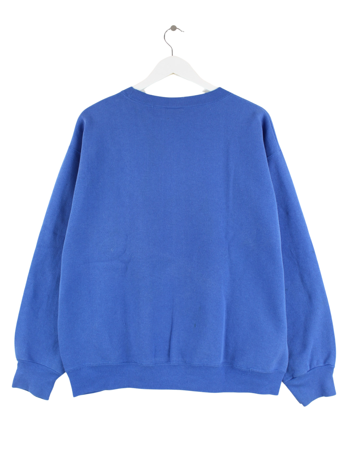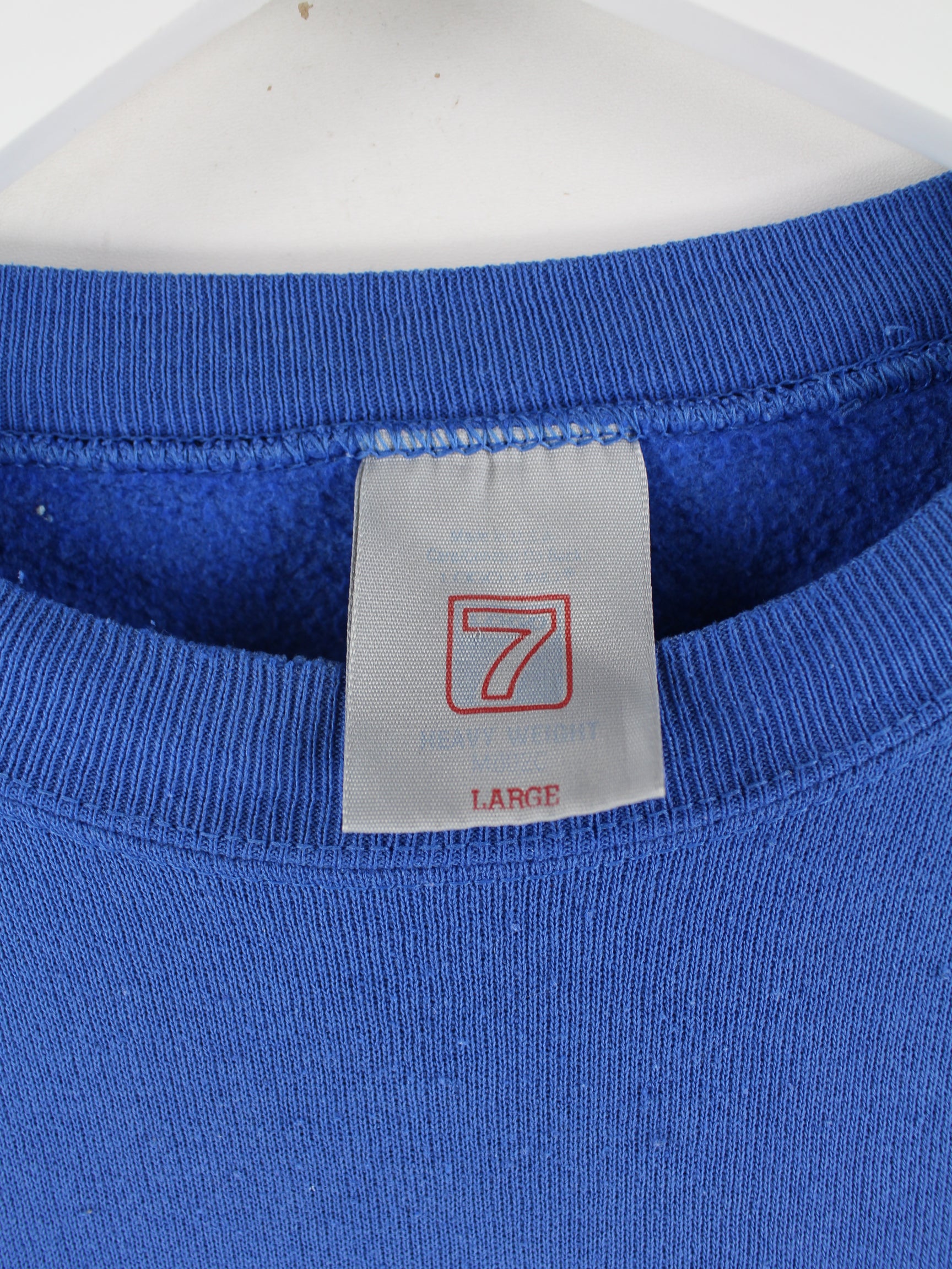 Blauer Sweater vom Label Logo 7 aus den 80'ern in Größe S. Er ist aus einer Baumwollmischung angefertigt. Den Zustand würden wir als 'In Ordnung' bezeichnen (vergl. Bilder).