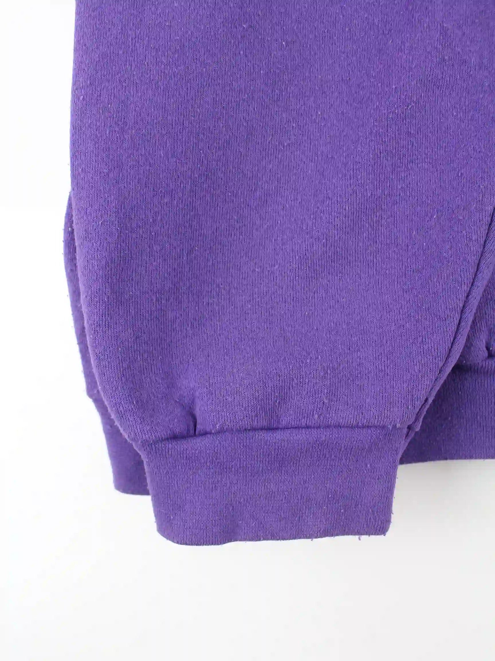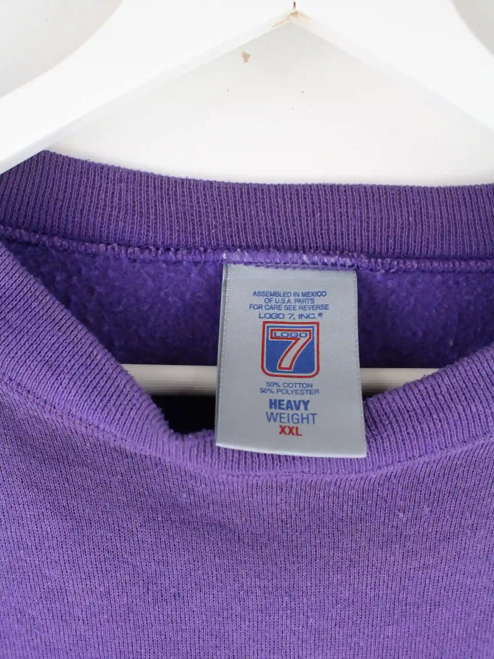 Sweater von Logo 7 mit Stickereien in Größe XXL aus den 90'ern. Er ist aus einer Baumwollmischung und in Lila vorrätig.