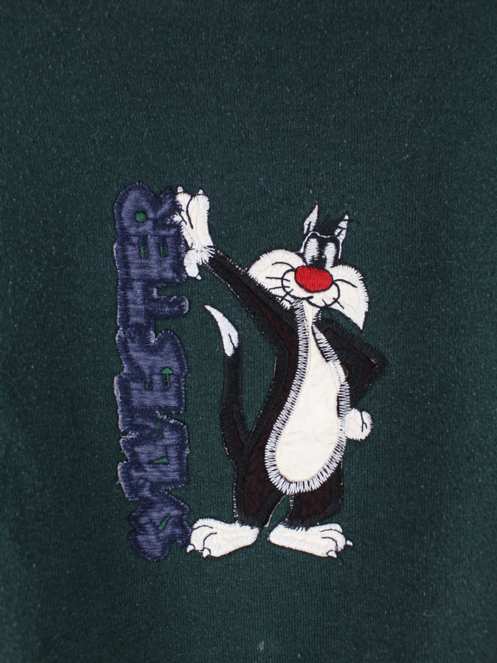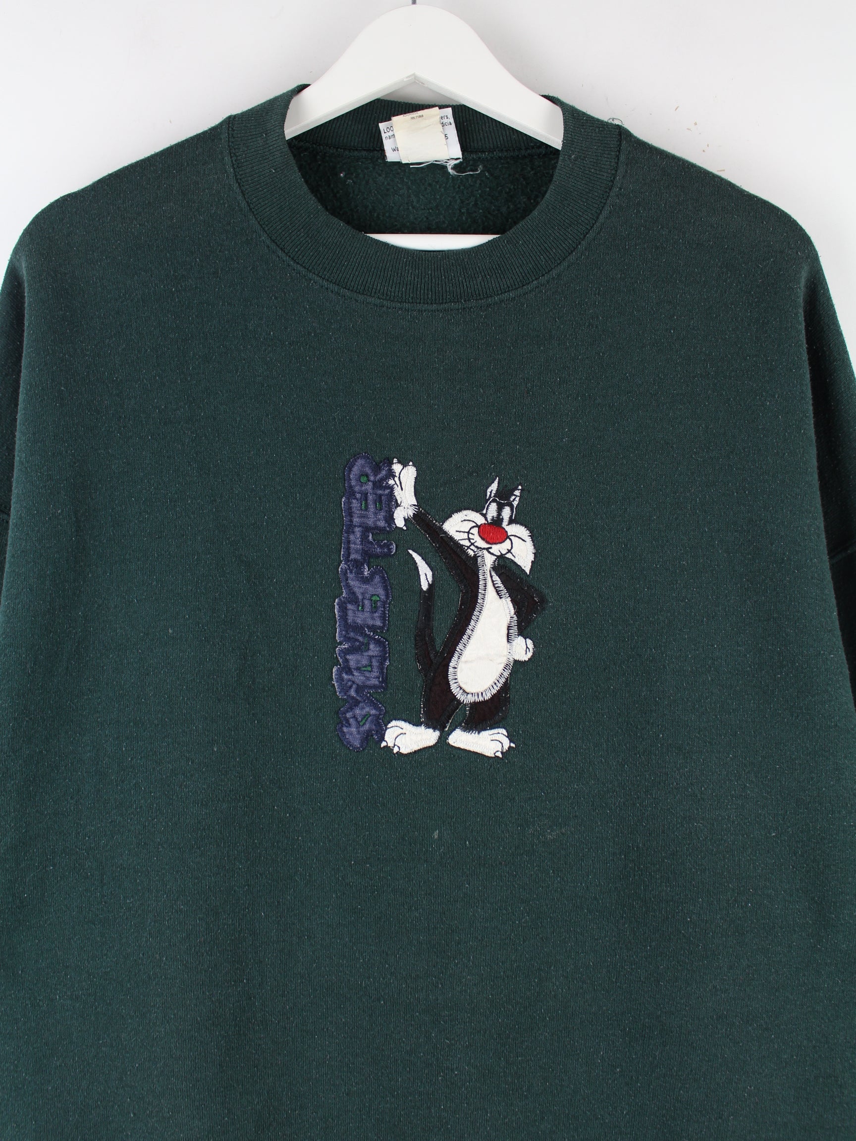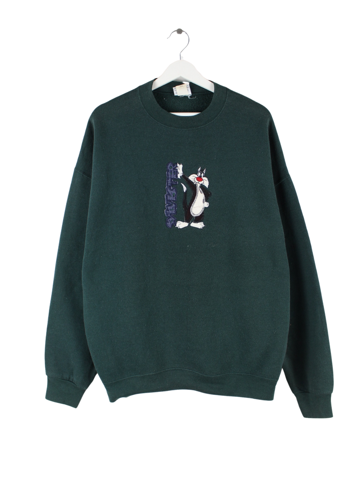 Looney Tunes 90s Vintage Silvester Embroidered Sweater Grün XL