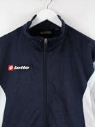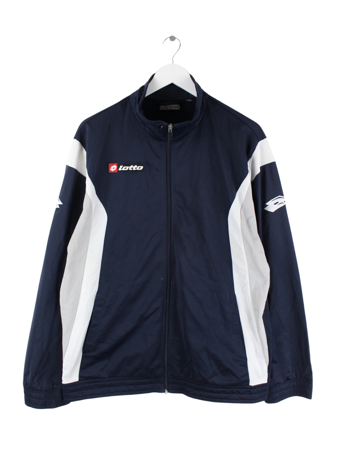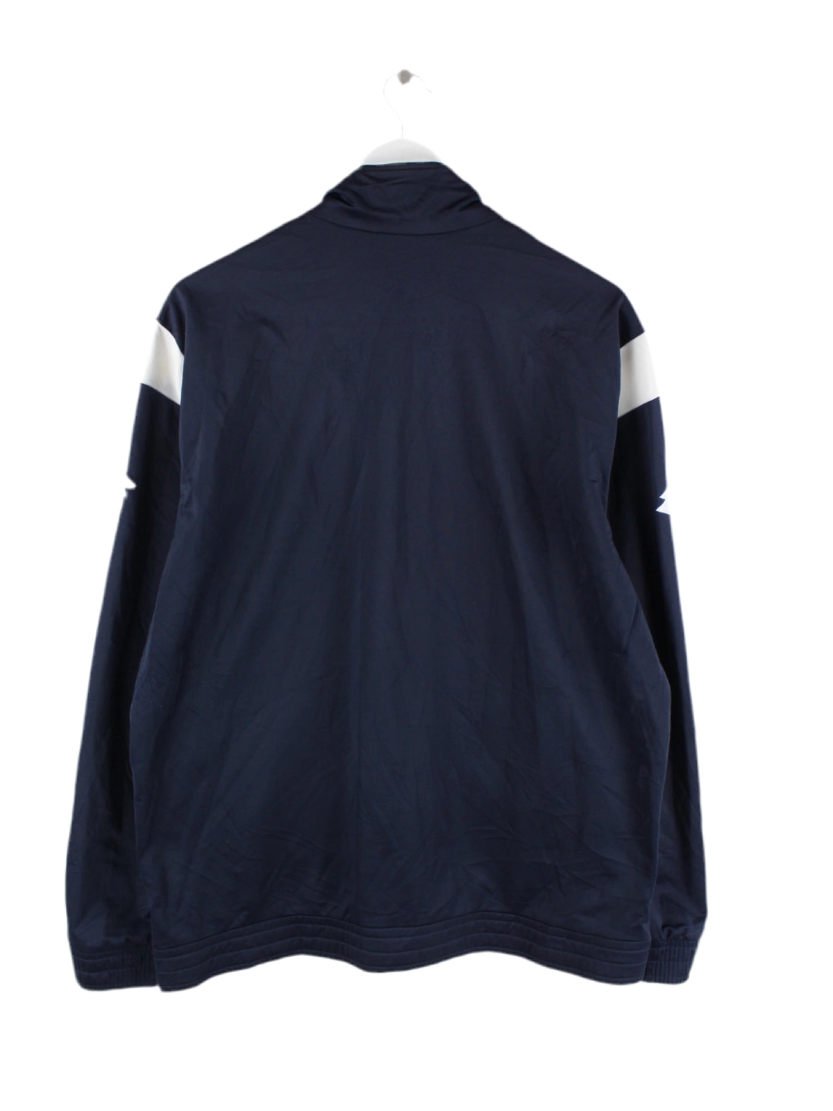 Blaue Trainingsjacke des Labels Lotto in Größe L. Sie ist aus Synthetik gefertigt. Den Zustand würden wir als 'In Ordnung' bezeichnen (vergl. Bilder).