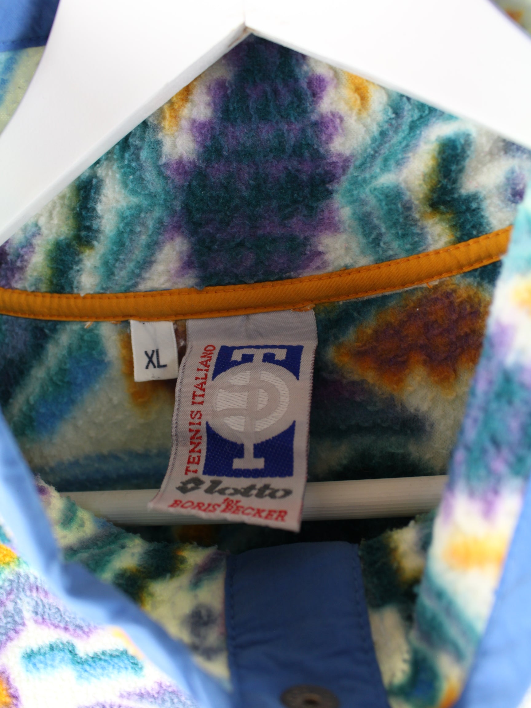 Mehrfarbiger Sweater des Labels Lotto aus den 90'ern in Größe XL. Er ist aus Synthetik angefertigt und in sehr gutem Zustand zu bekommen.