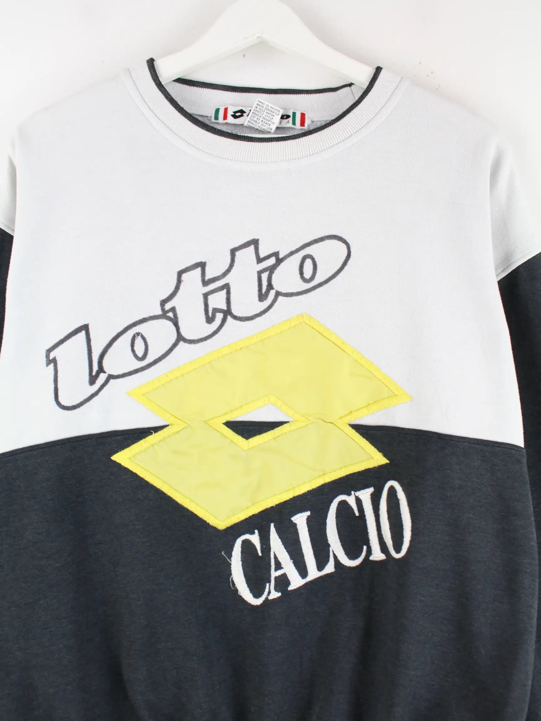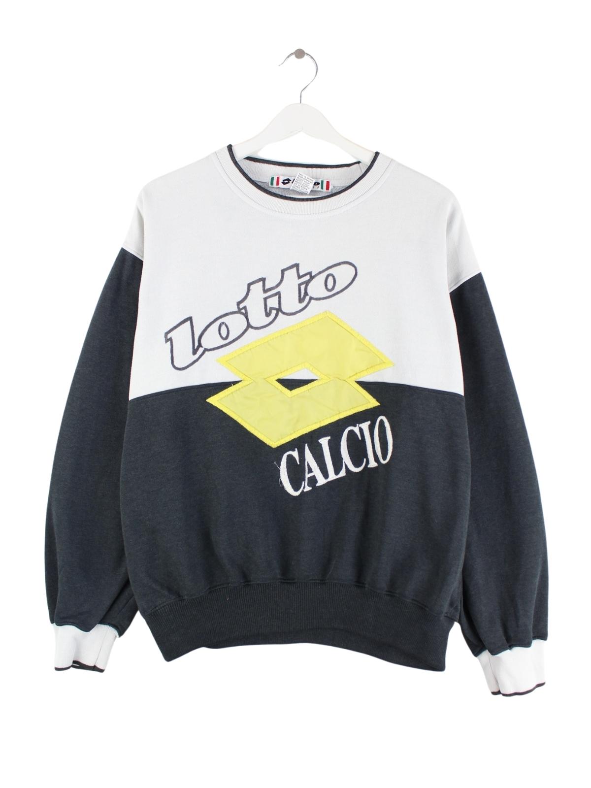 Sweater des Labels Lotto mit gesticktem Logo in Größe L aus den 90'ern. Er ist aus einer Baumwollmischung produziert und in bunten Farben bei uns vorrätig.