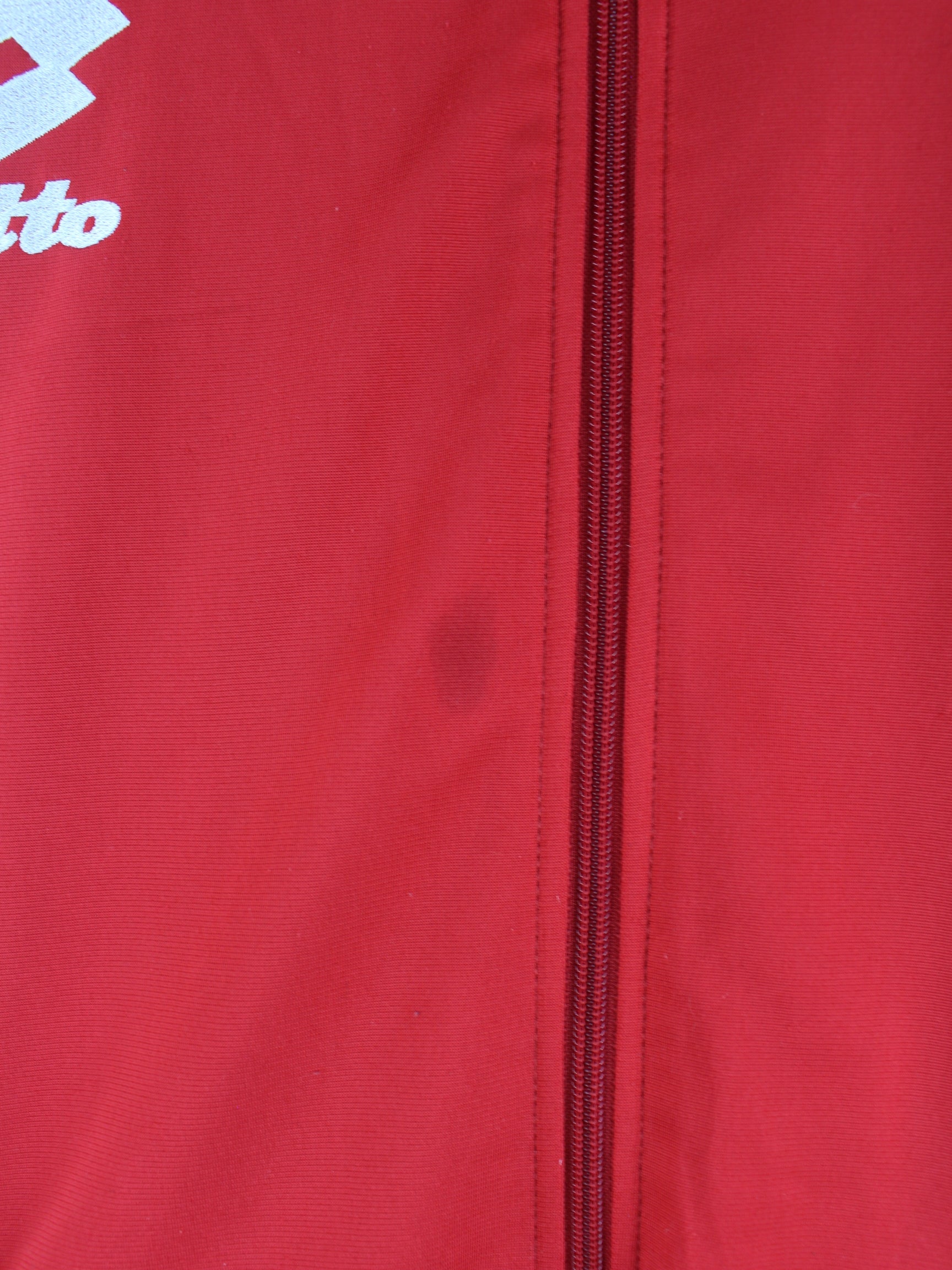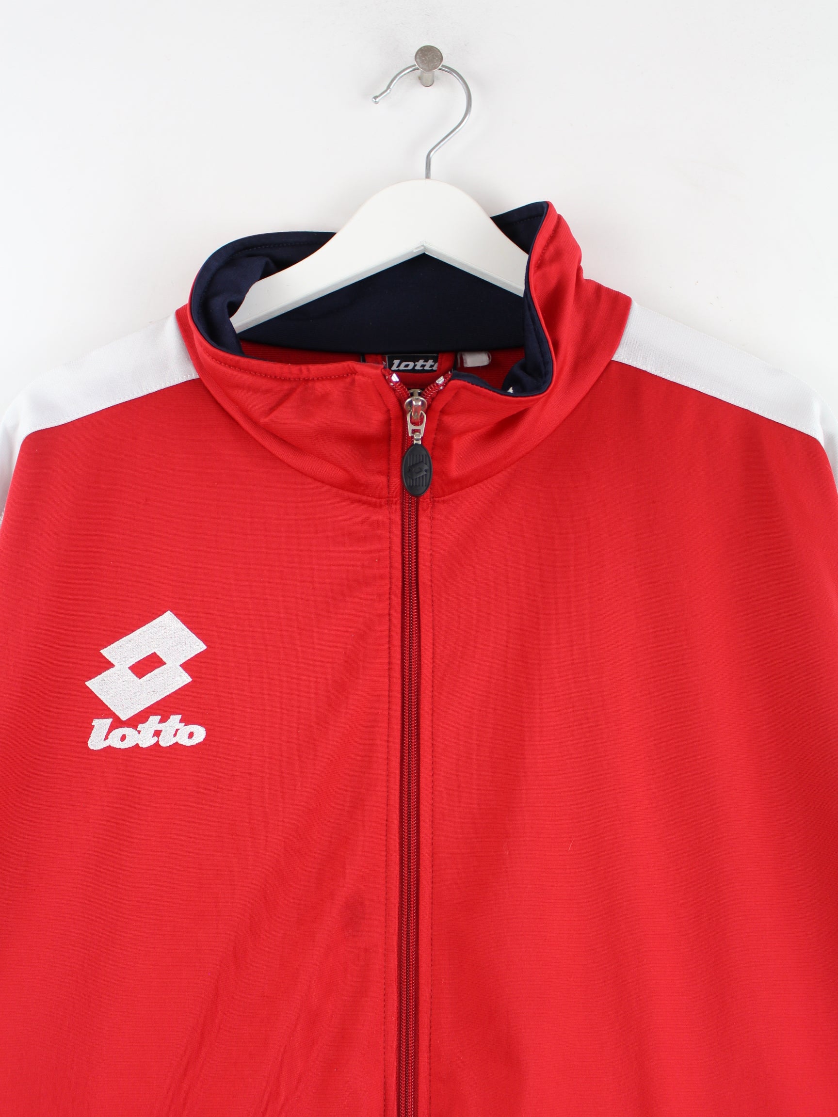 Trainingsjacke vom Label Lotto mit gesticktem Logo in Größe XL. Sie ist aus Synthetik angefertigt und in Rot bei uns vorrätig.