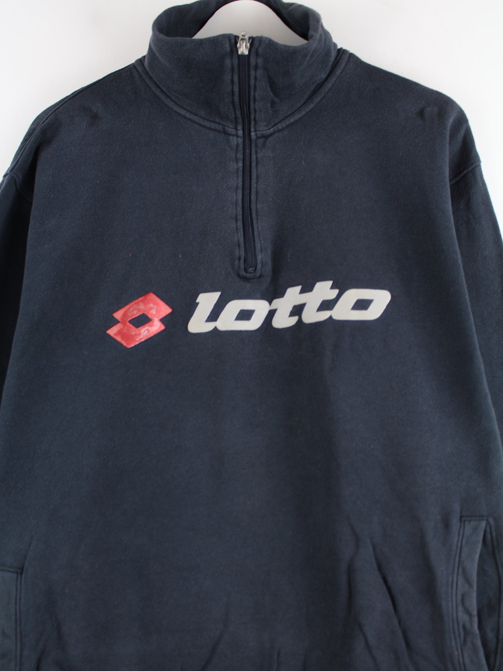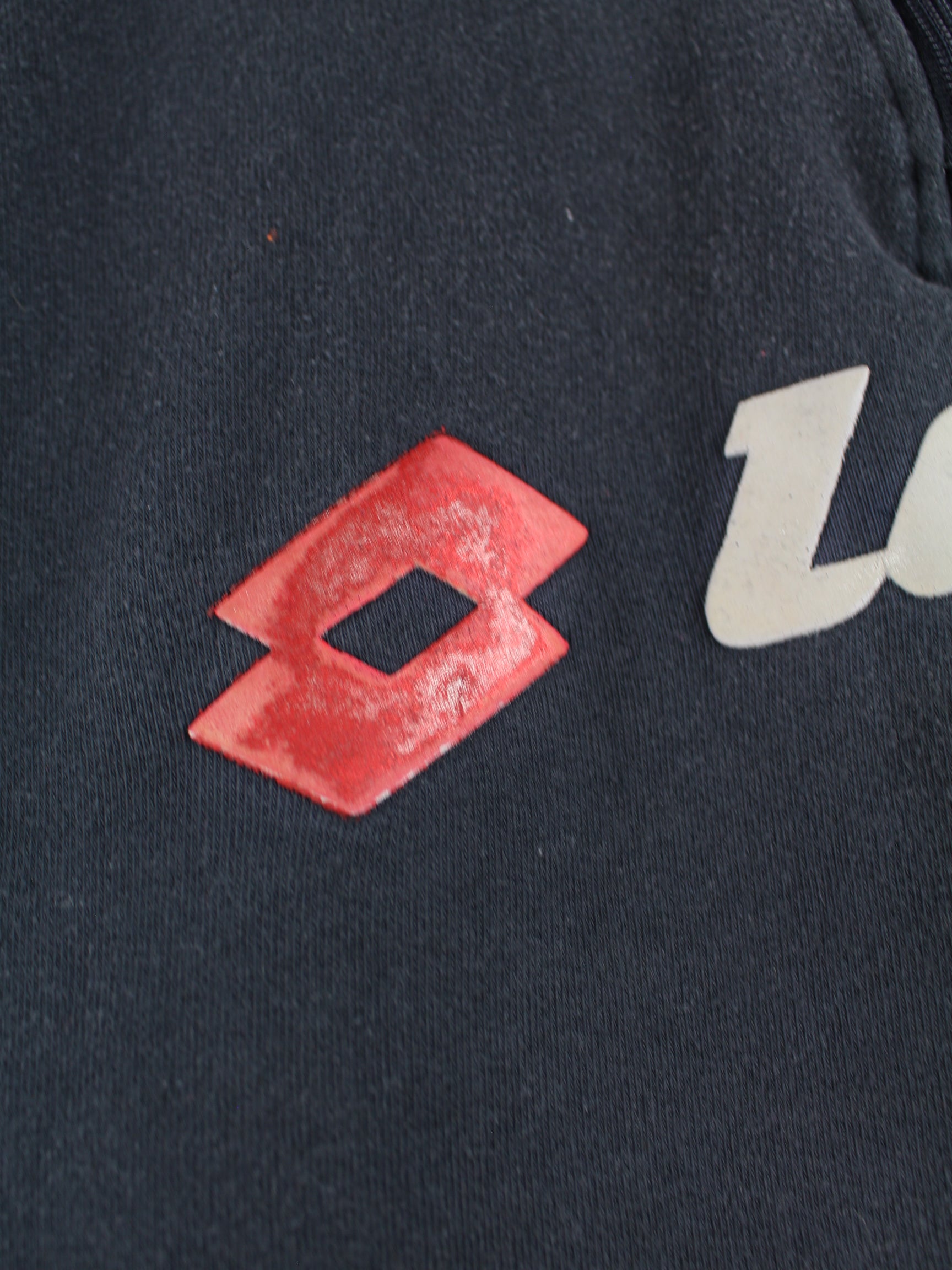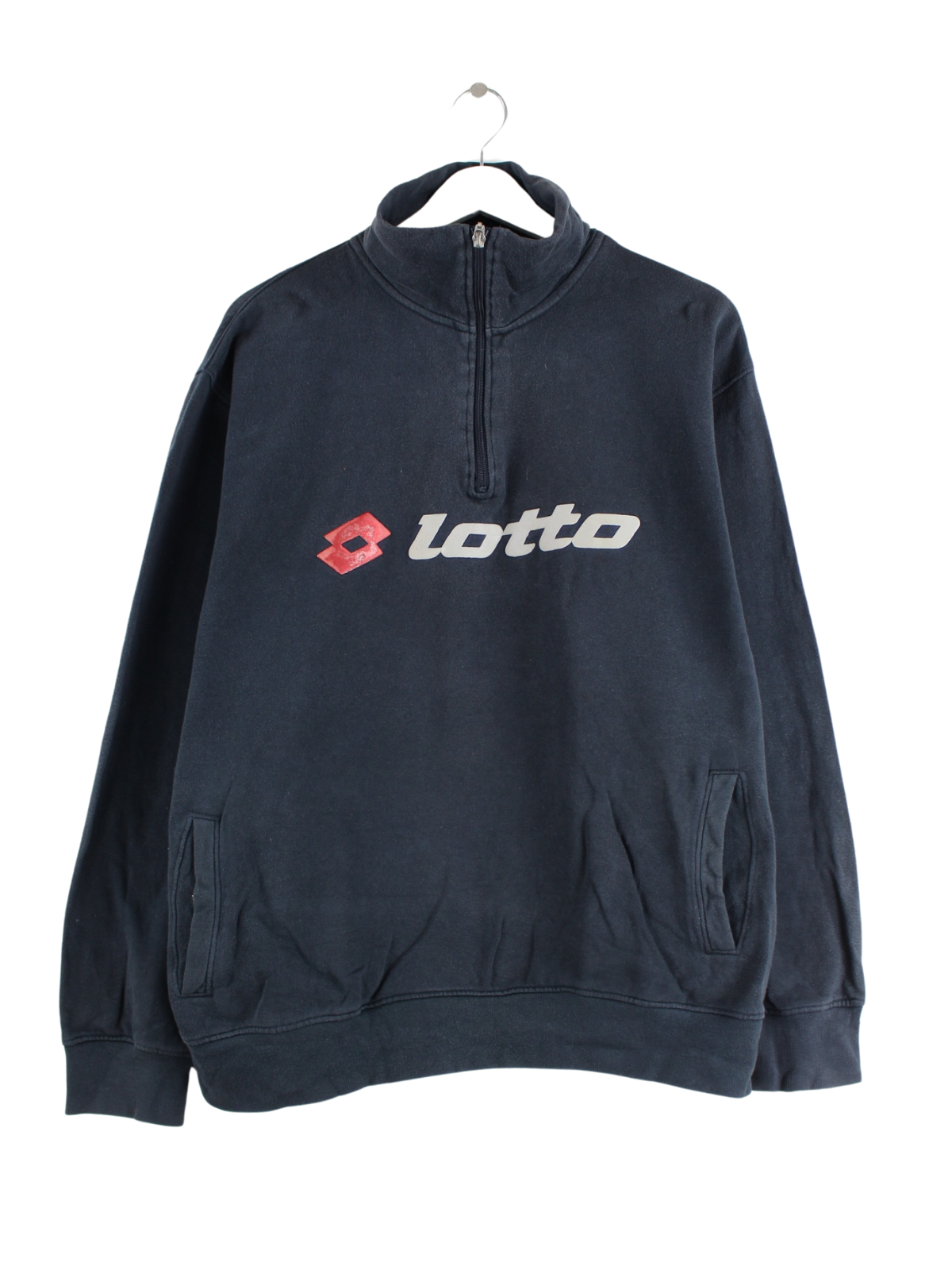 Sweater von Lotto mit kurzem Reißverschluß in Größe L. Er ist aus einer Baumwollmischung und in Schwarz im Bestand. Mit tollem Logo-Print.