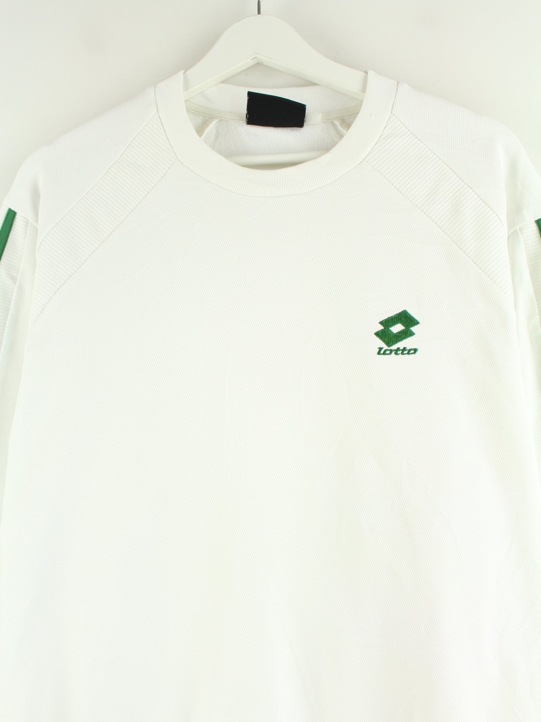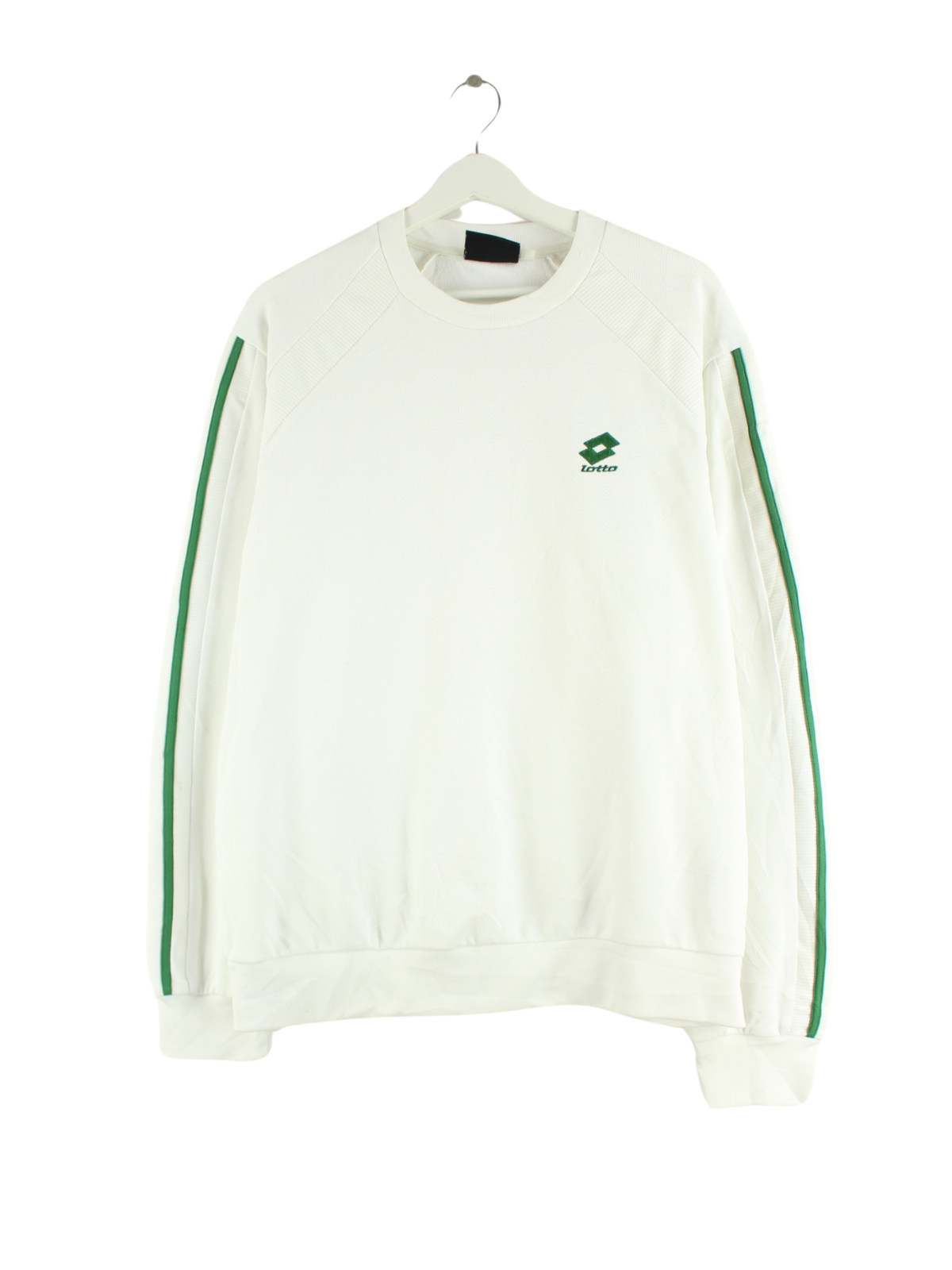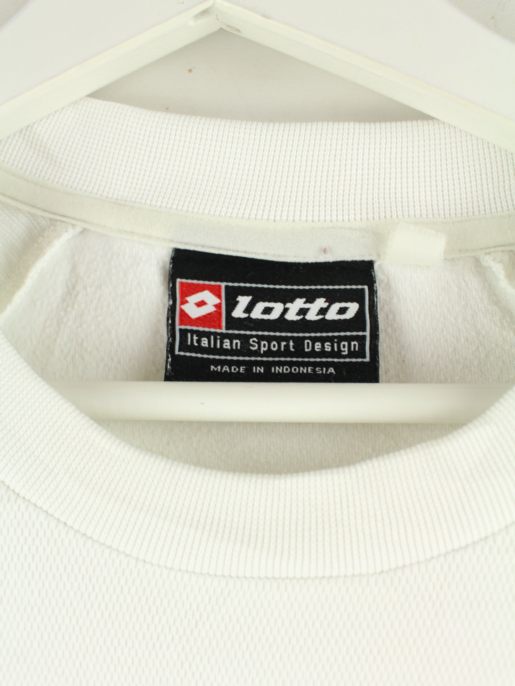 Weißer Sweater mit gestickten Motiven aus dem Hause Lotto aus Anfang der 2000'er in Größe L. Er ist aus einer Baumwollmischung gemacht und in sehr gutem Zustand lieferbar.