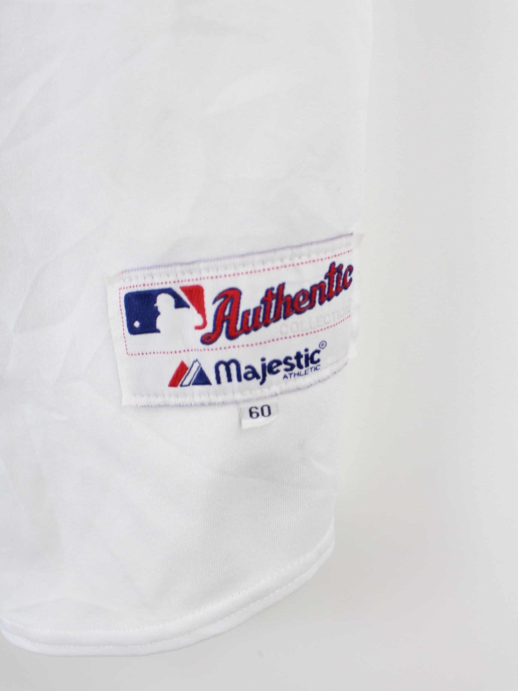 Jersey aus dem Hause Majestic mit Stickereien in Größe 4XL. Es ist aus Synthetik hergestellt und in Weiß im Angebot.