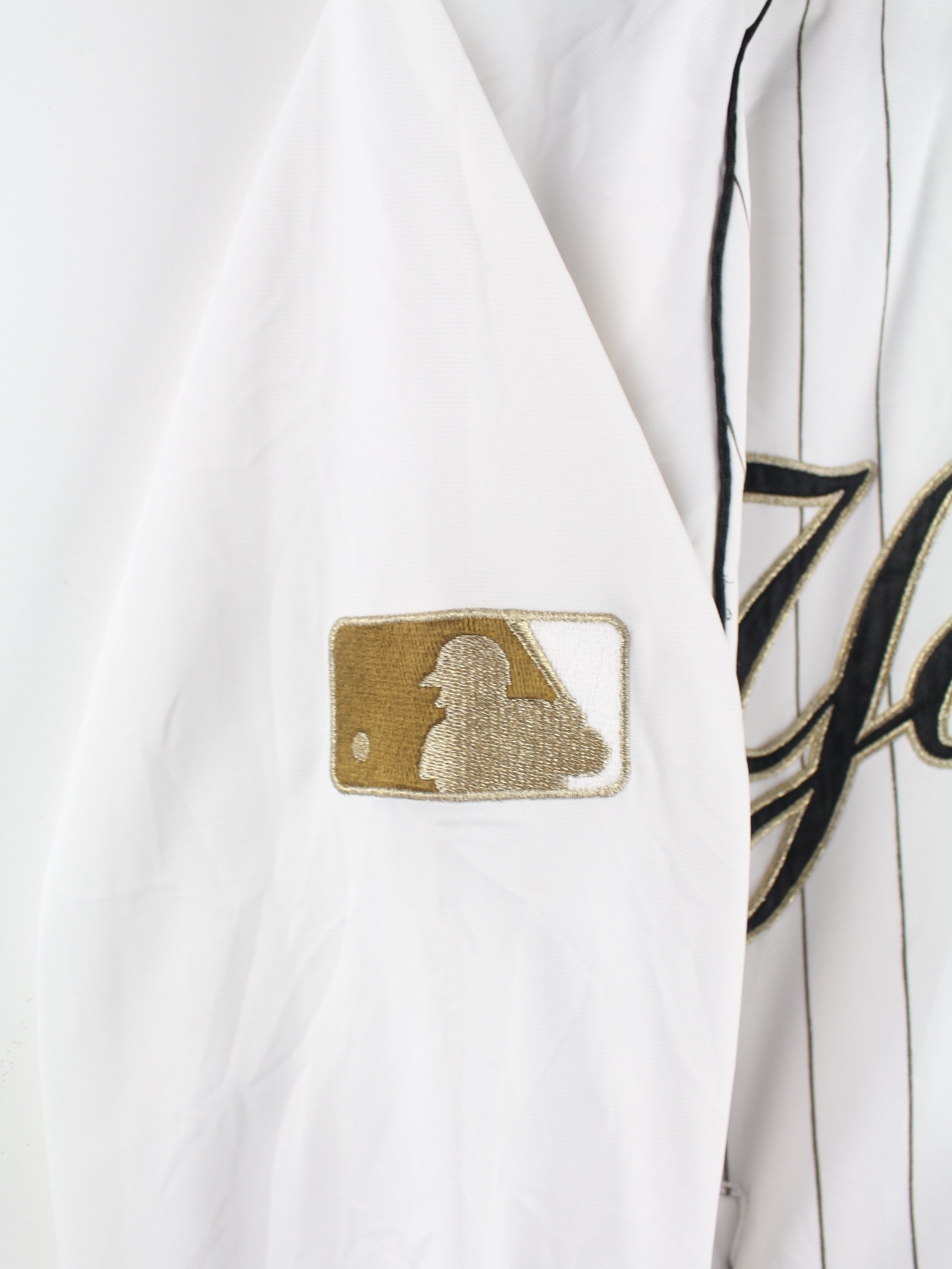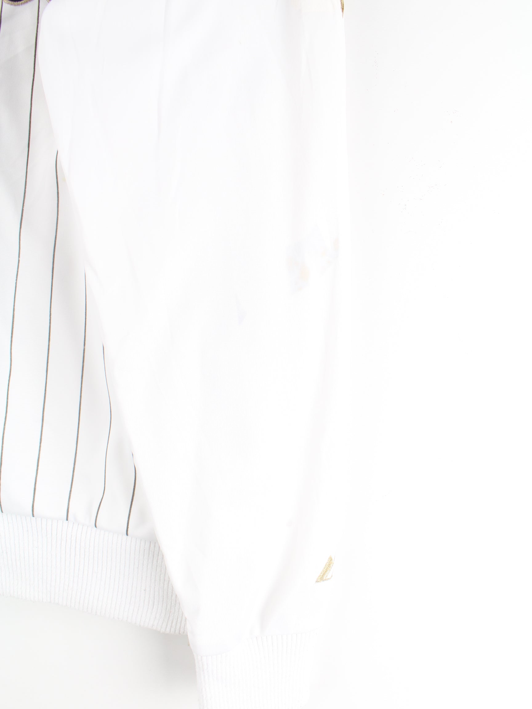 Trainingsjacke der Brand Majestic in Größe S. Sie ist aus Synthetik produziert und in Weiß bei uns vorrätig.