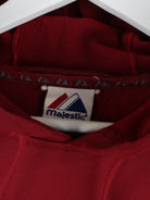 Roter Hoodie mit gestickten Motiven aus dem Hause Majestic in Größe XL. Er ist aus einer Baumwollmischung gemacht. Den Zustand würden wir als 'In Ordnung' bezeichnen (vergl. Bilder).