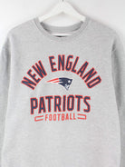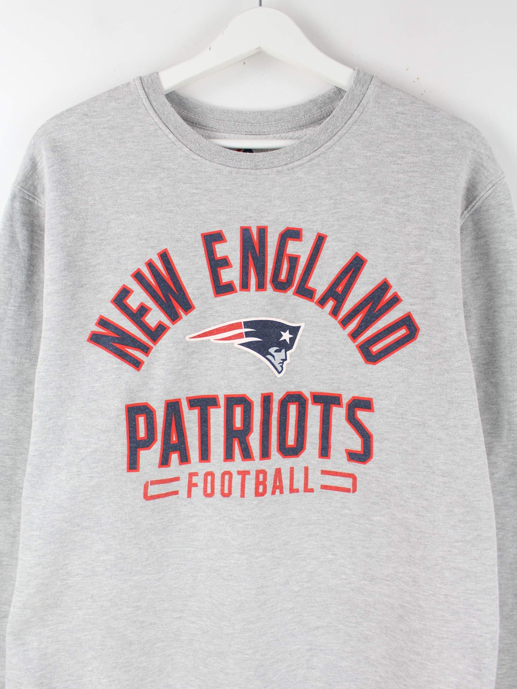 Grauer Sweater vom Label Majestic in Größe XL. Er ist aus einer Baumwollmischung hergestellt und in sehr gutem Zustand auf Lager. Mit schickem Patriots Print.