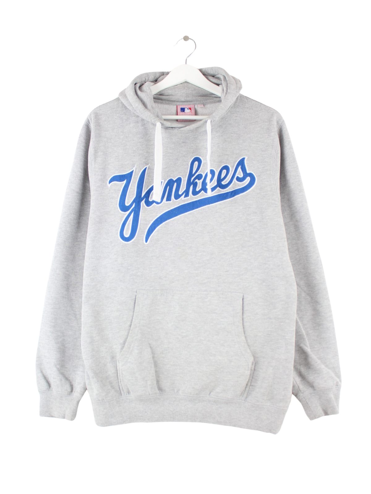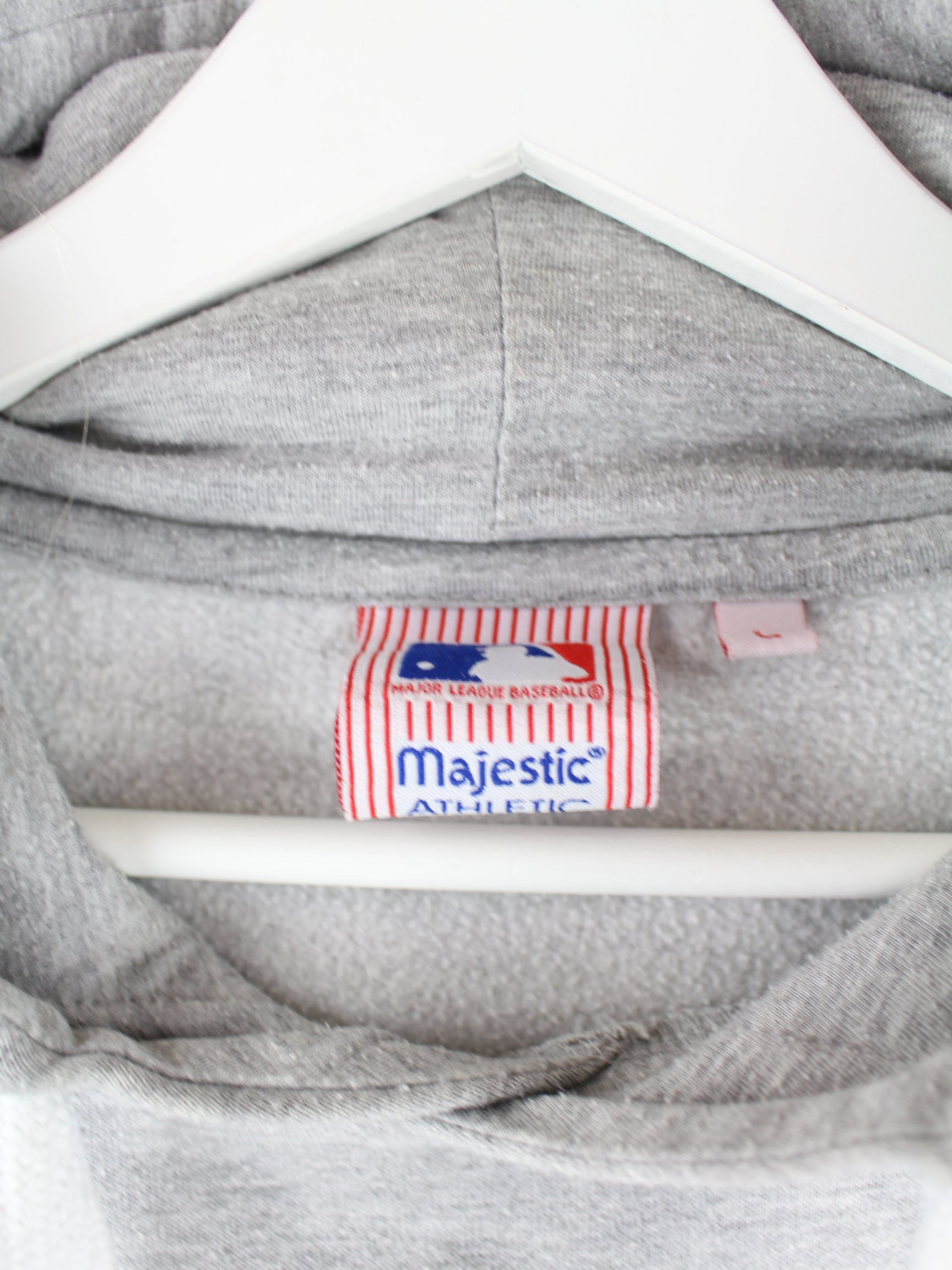 Hoodie aus dem Hause Majestic mit Stickereien in Größe L. Er ist aus einer Baumwollmischung angefertigt und in Grau im Bestand.