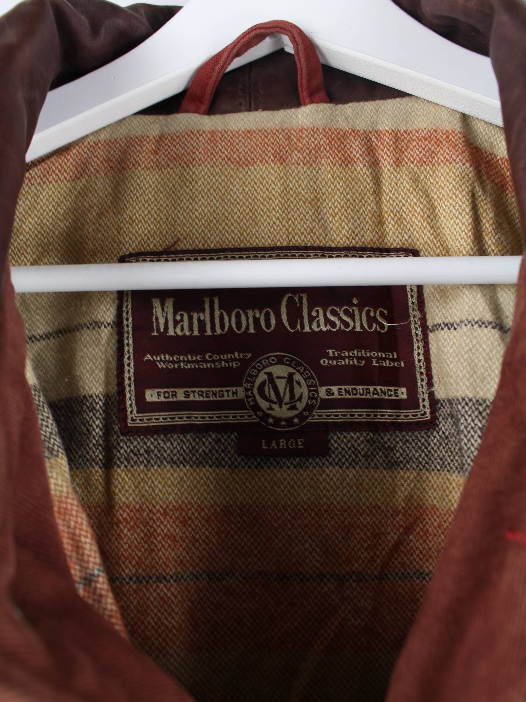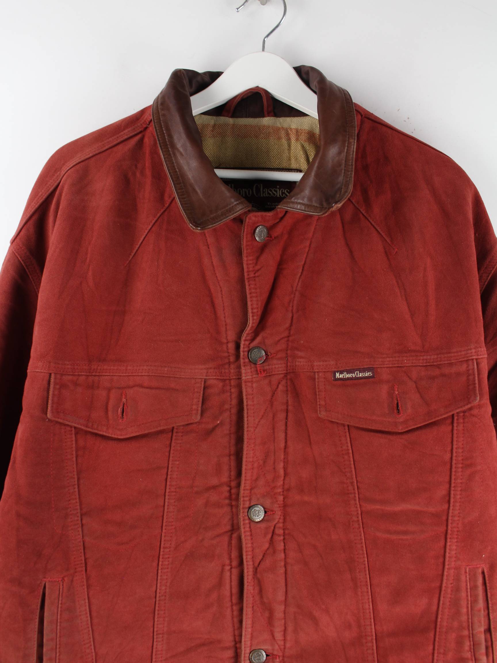 Rote Jacke vom Brand Marlboro aus den 90'ern in Größe L. Sie ist aus Baumwolle gemacht. Den Zustand würden wir als 'In Ordnung' bezeichnen (vergl. Bilder).