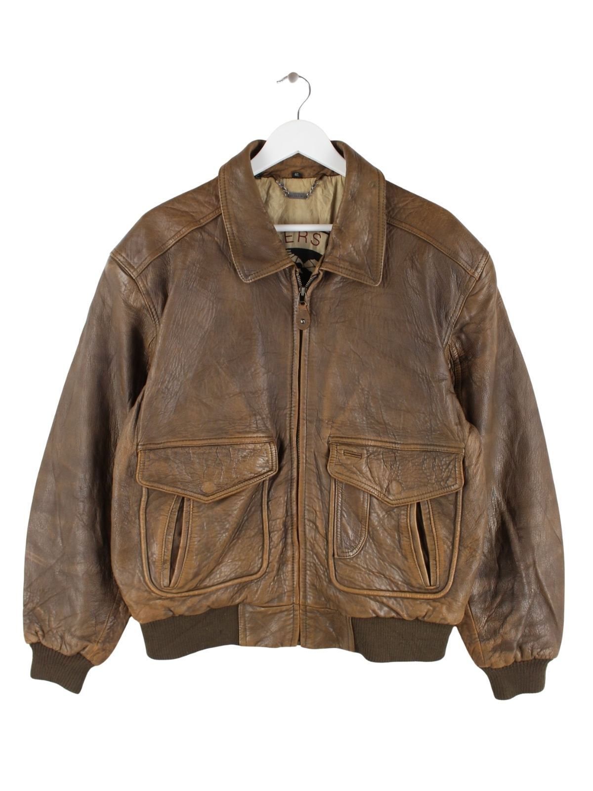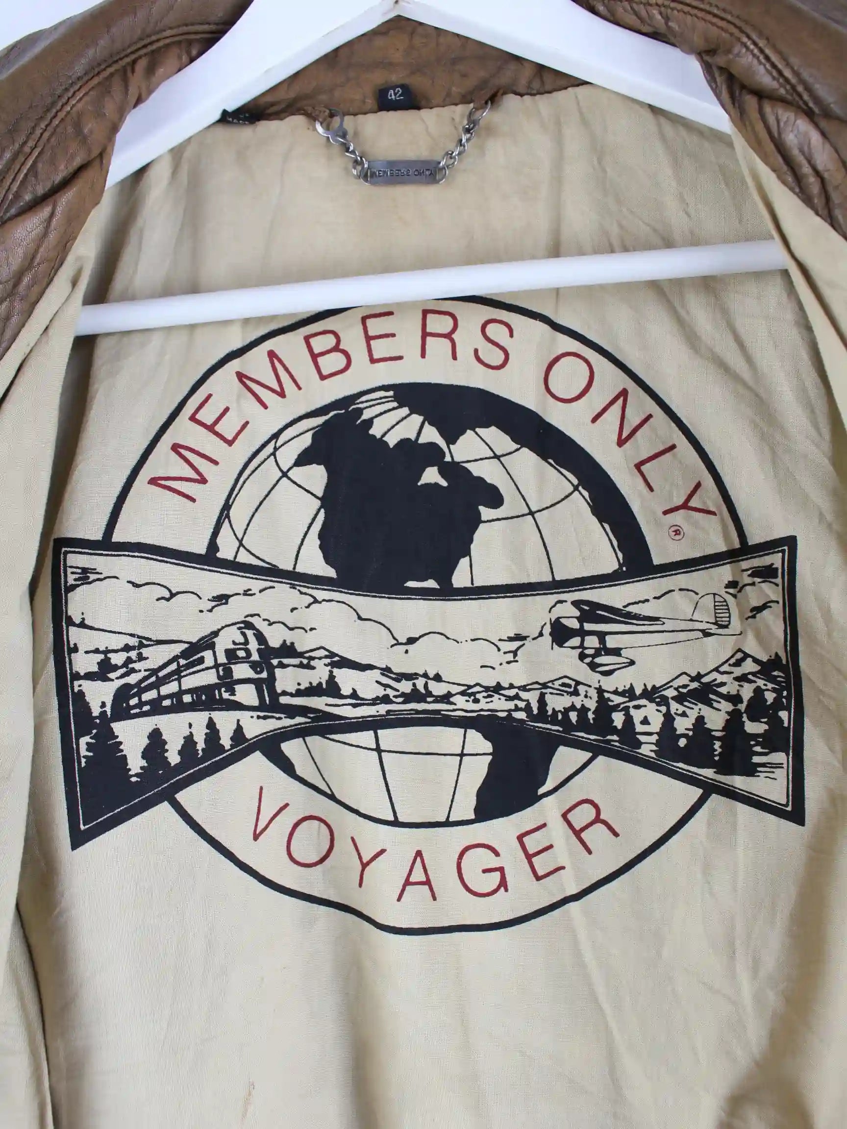 Braune Jacke des Labels Members Only aus den 90'ern in Größe L. Sie ist aus Leder und in gutem Zustand im Bestand.