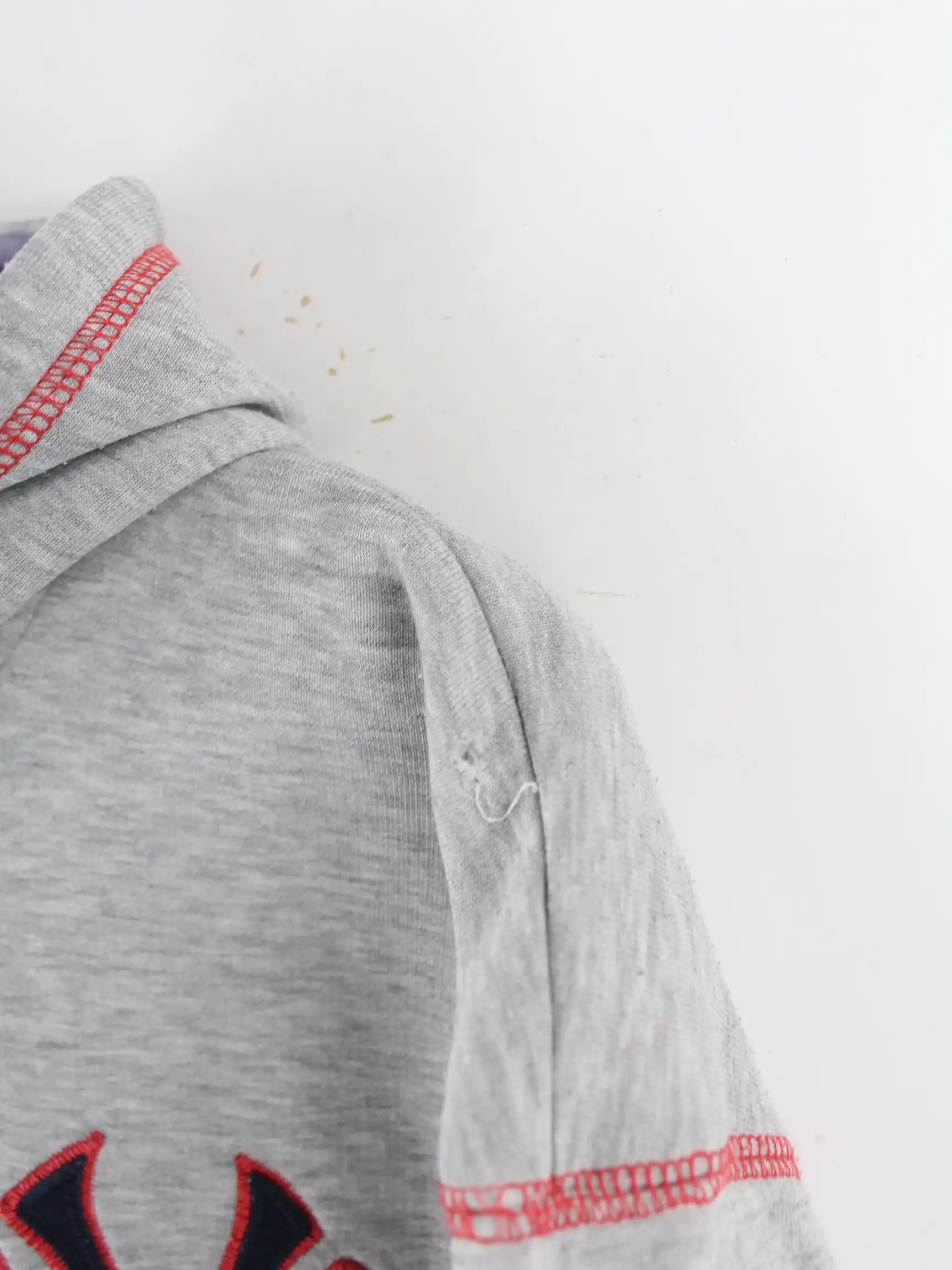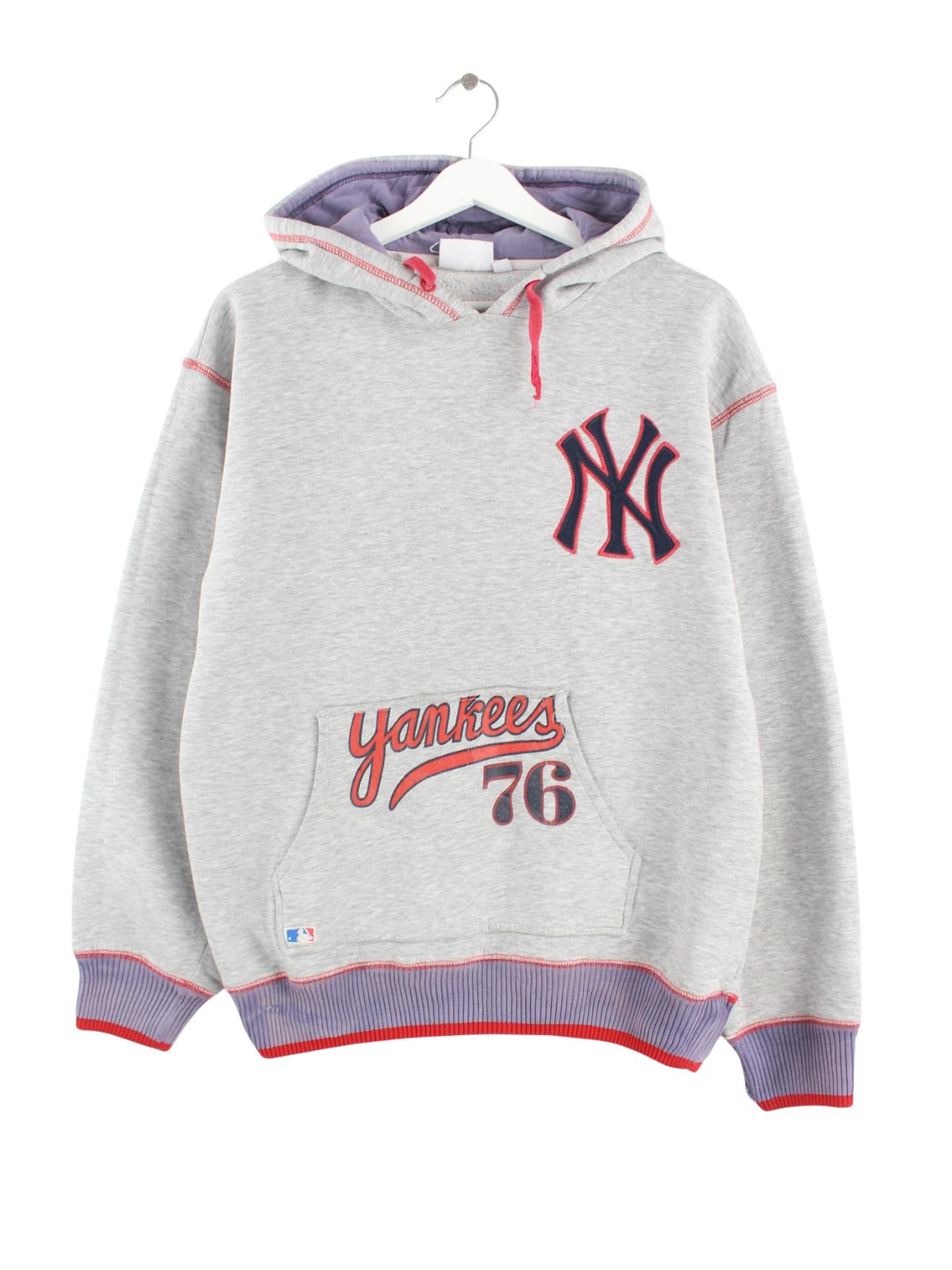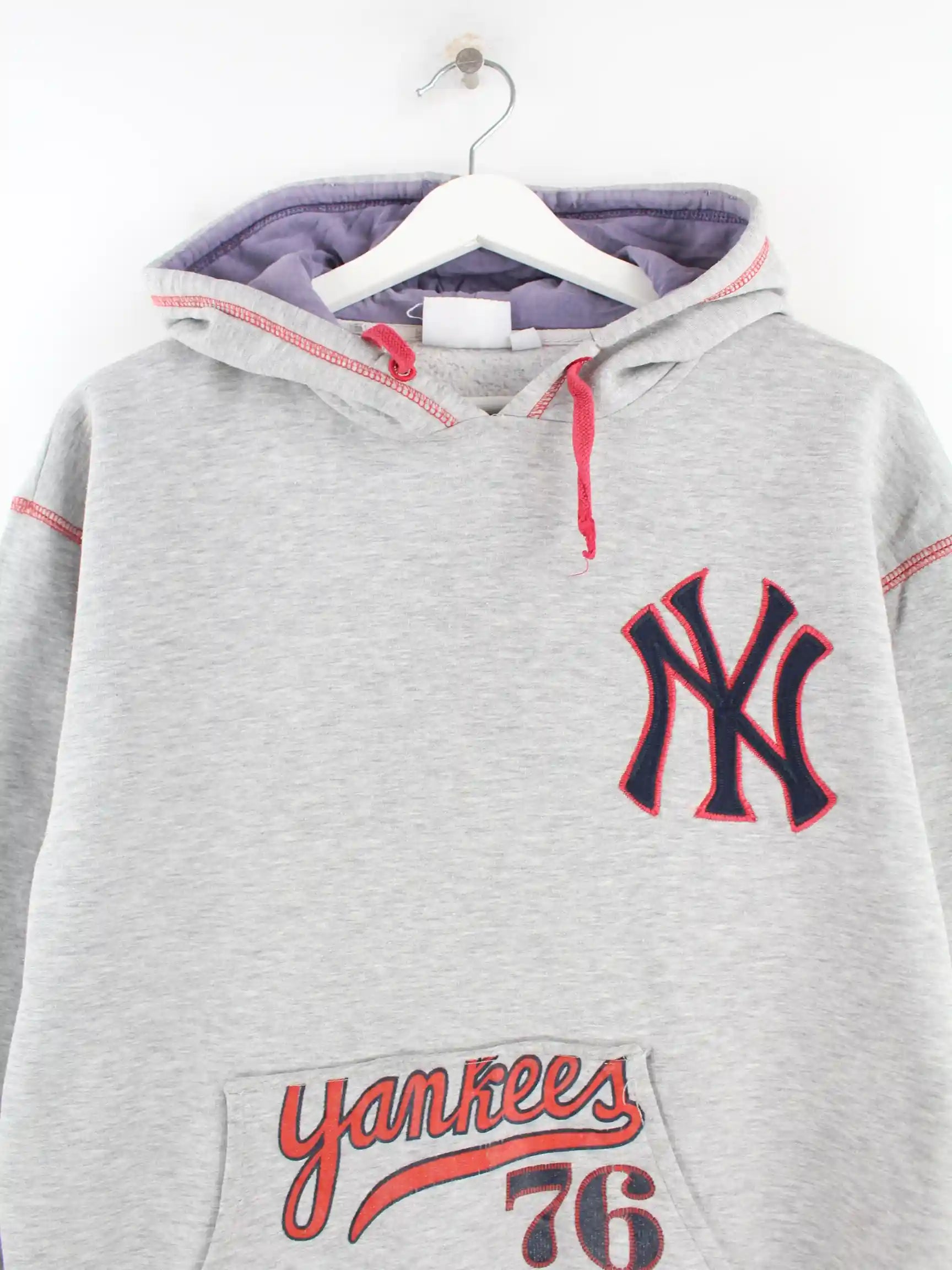 Grauer Hoodie der Brand MLB in Größe S. Er ist aus einer Baumwollmischung und in gutem Zustand auf Lager.