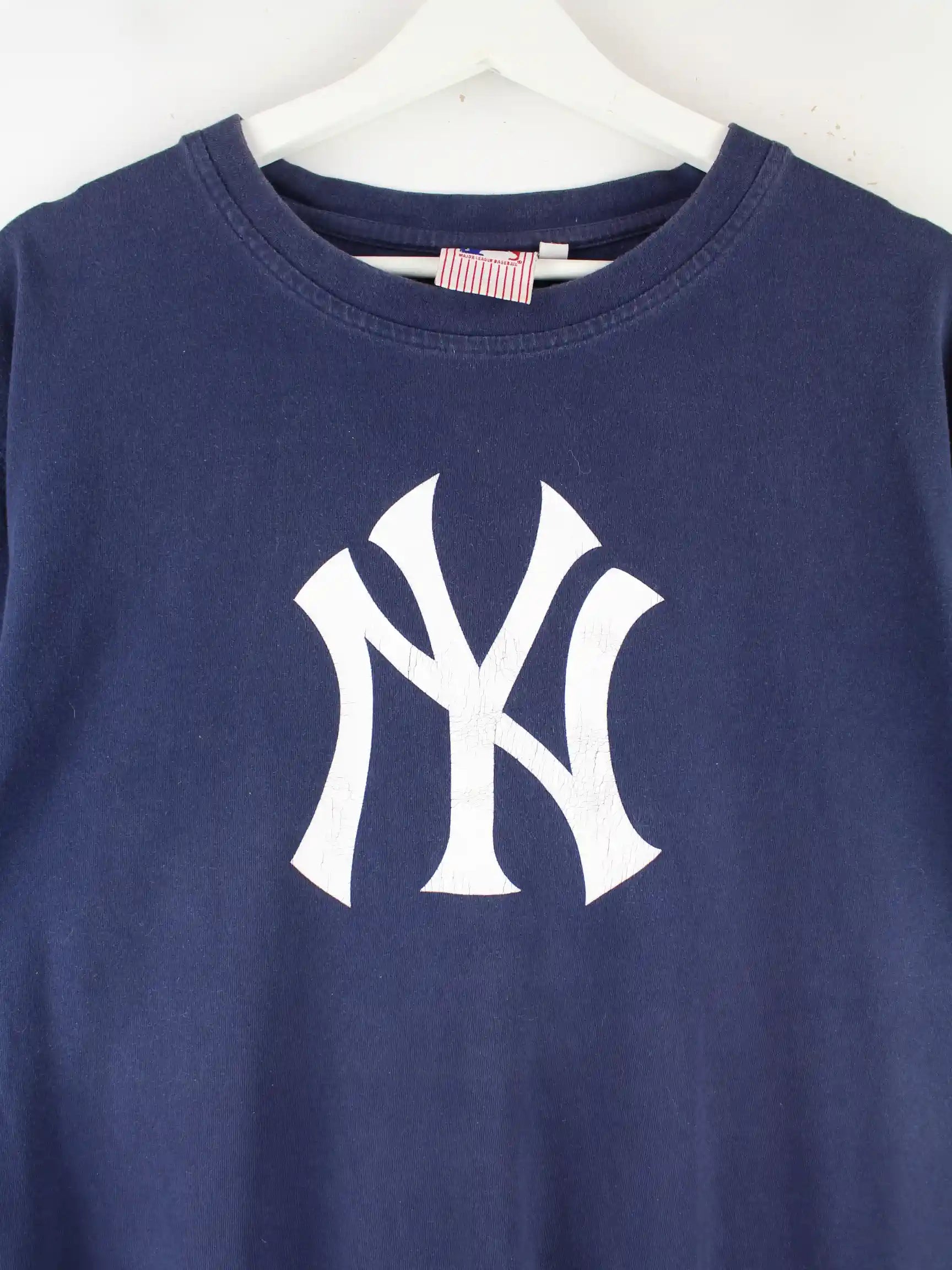 Blaues T-Shirt von MLB in Größe XL. Es ist aus Baumwolle gefertigt und in gutem Zustand lieferbar. Mit schickem Yankees Print.