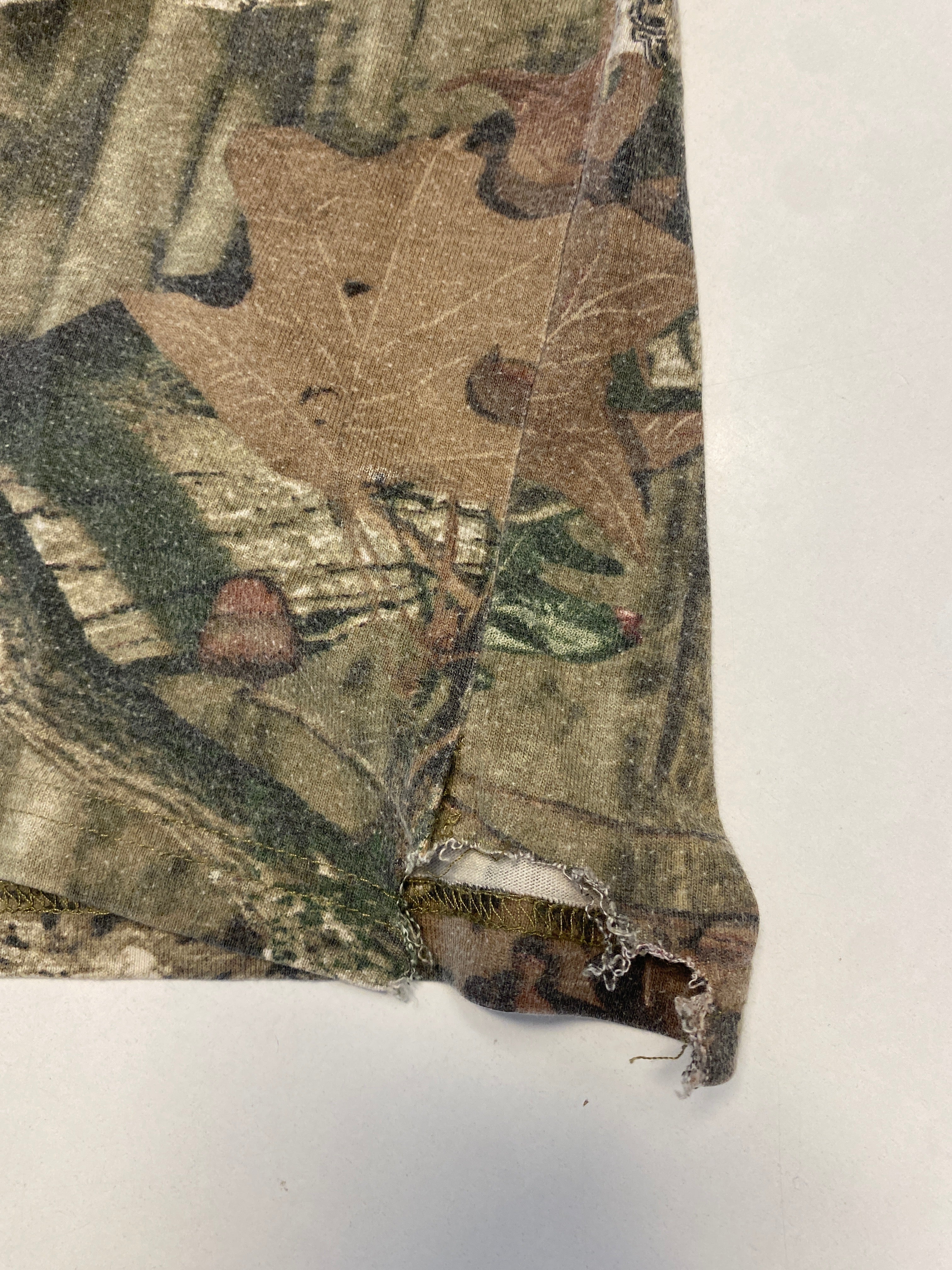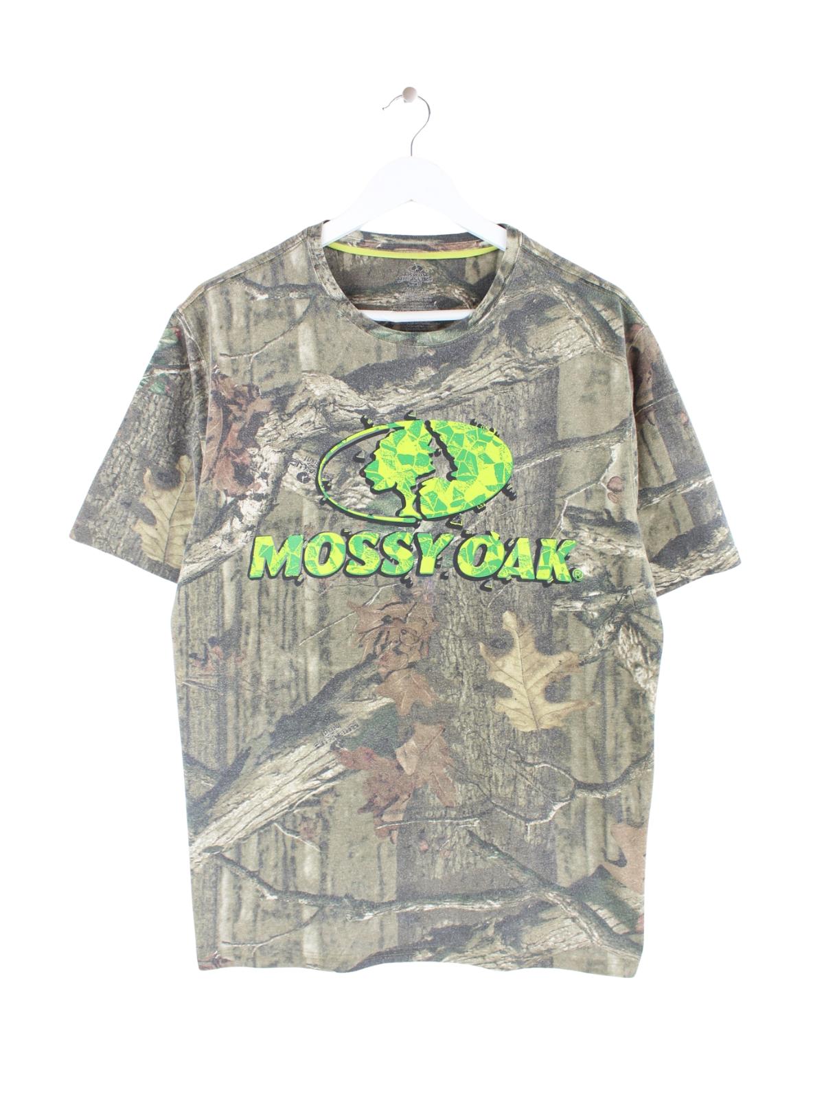 T-Shirt vom Label Mossy Oak in Größe L. Es ist aus Baumwolle angefertigt und in Braun im Bestand. Mit chiquem Realtree Print.