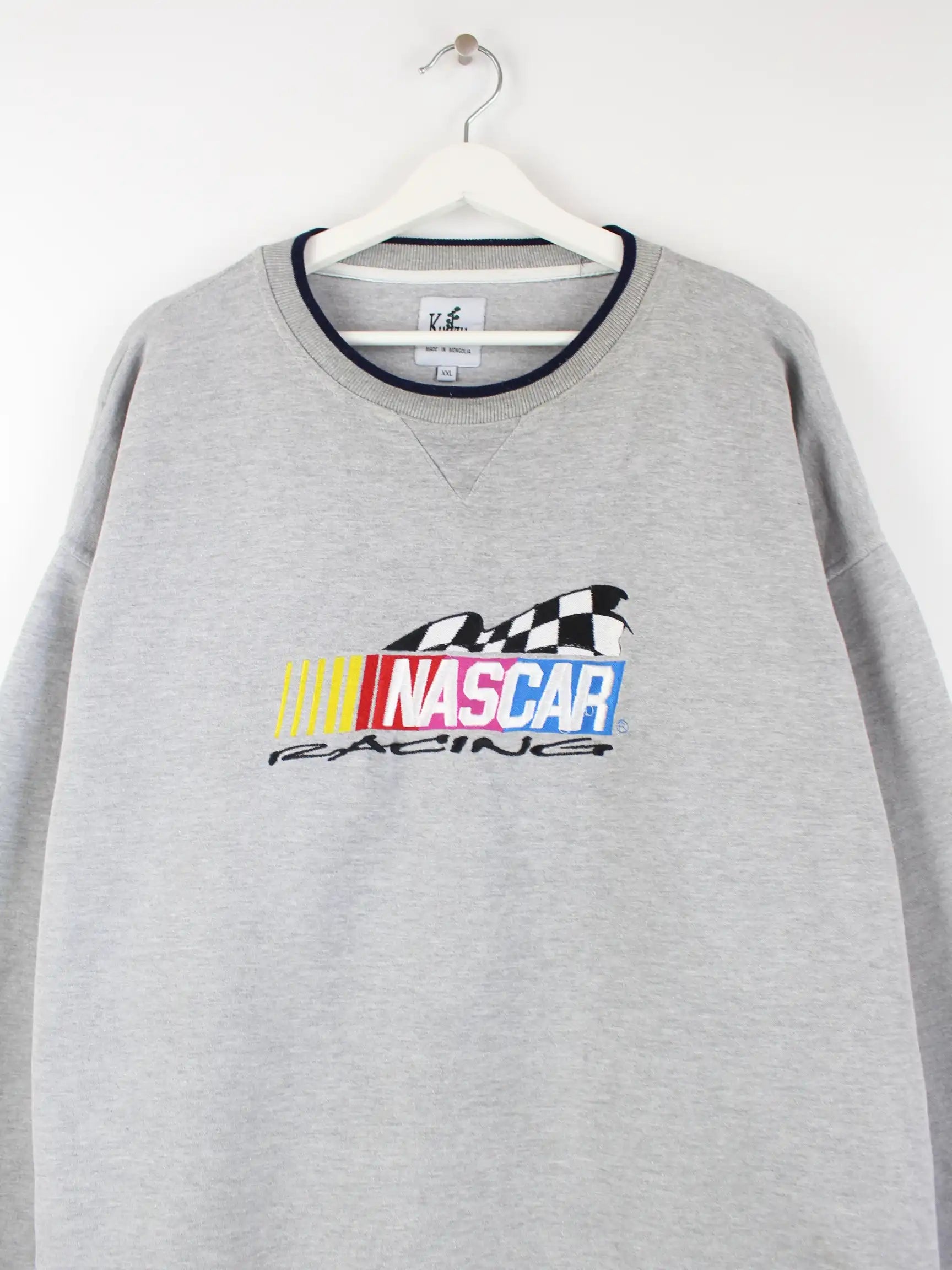 Grauer Sweater der Marke Nascar in Größe XXL. Er ist aus einer Baumwollmischung produziert und in sehr gutem Zustand im Angebot.
