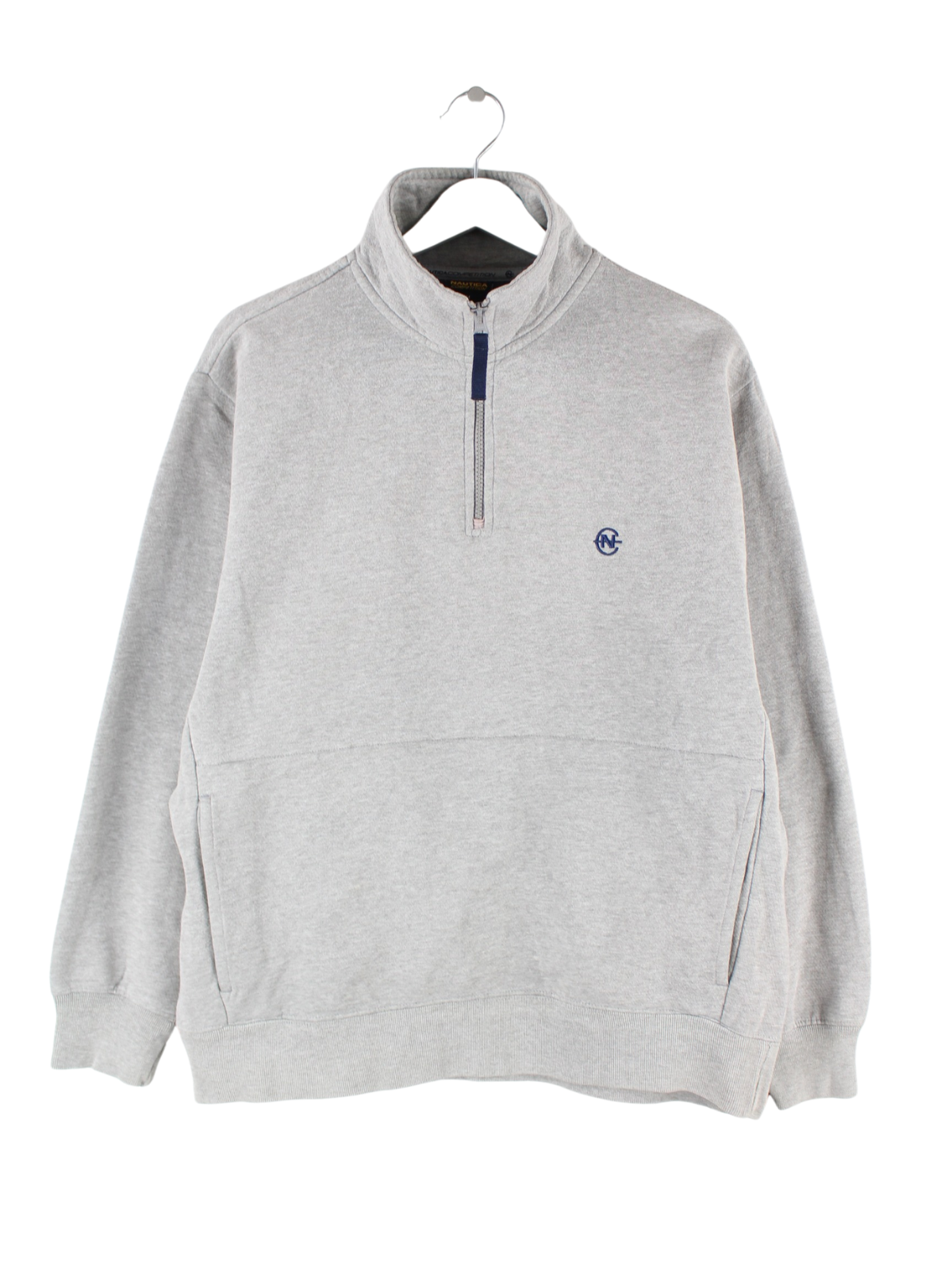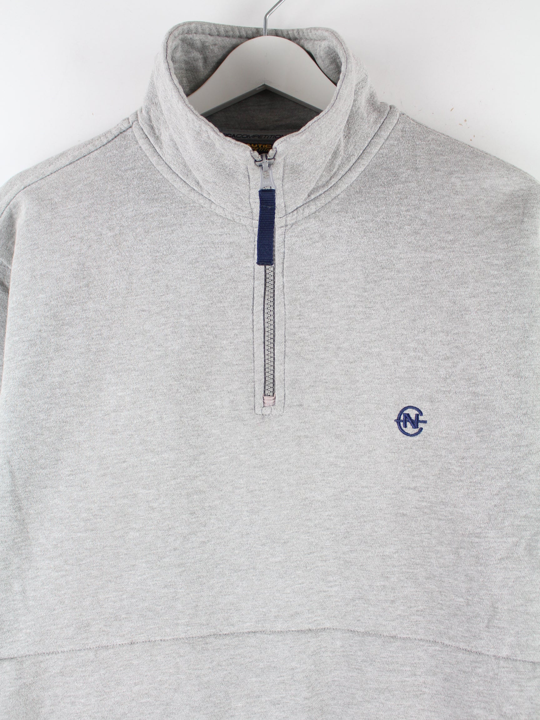 Sweater der Brand Nautica mit half Zip in Größe M. Er ist aus einer Baumwollmischung gefertigt und in Grau im Angebot.