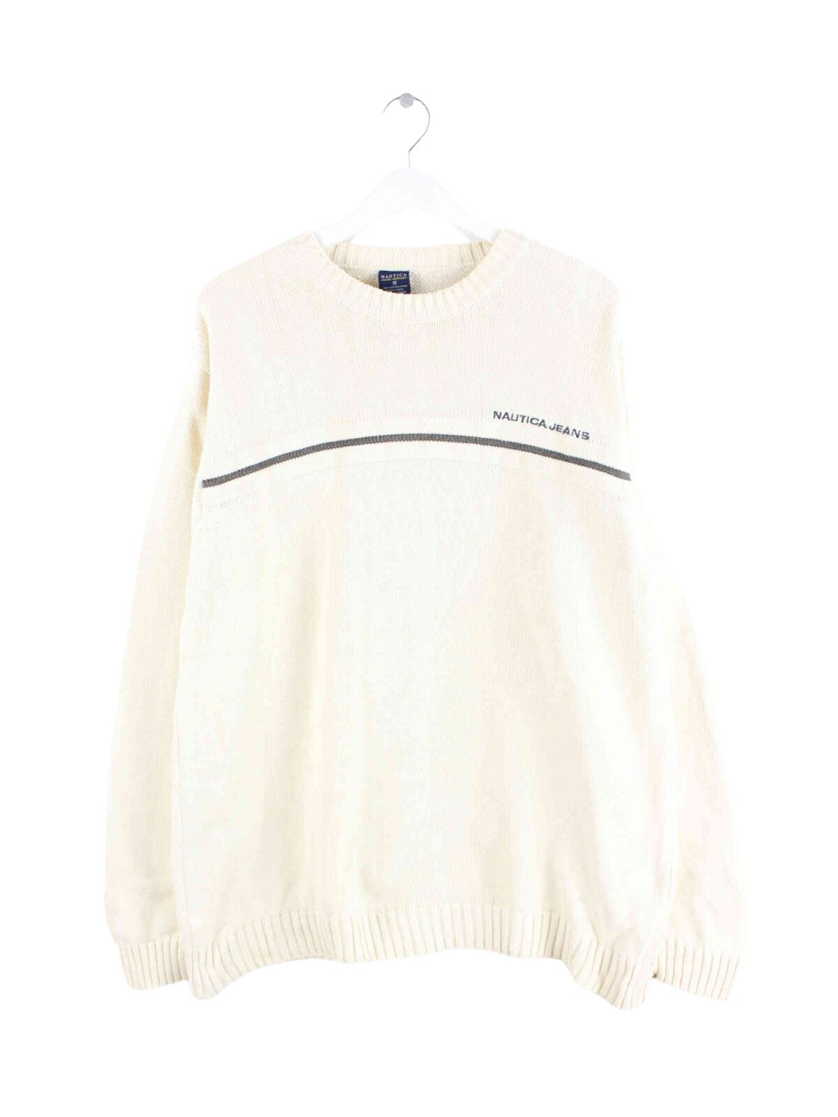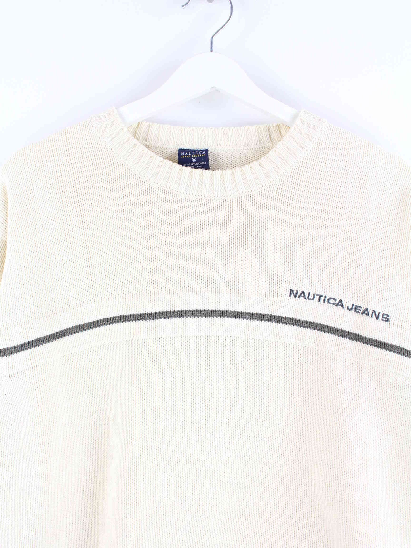 Beigefarbener Pullover mit Stick vom Label Nautica in Größe XXL. Er ist aus Baumwolle hergestellt und in gutem Zustand zu haben.