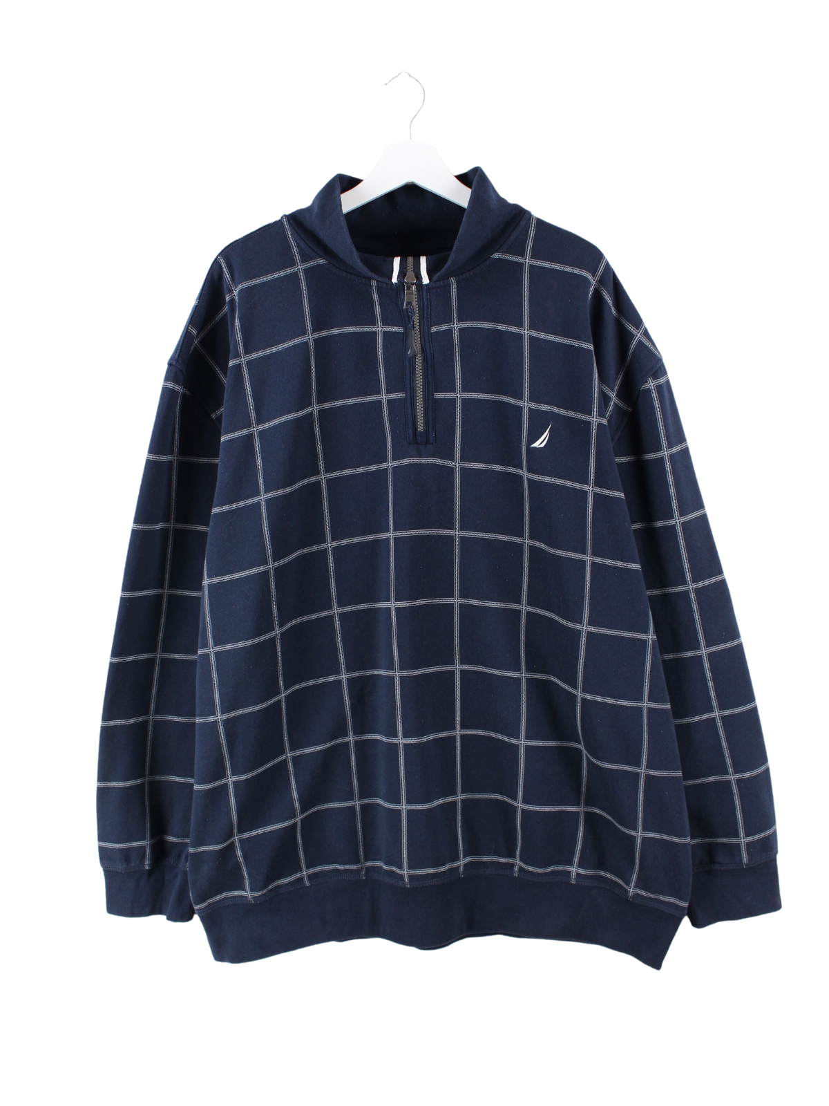 Nautica Demi Zip Pull à Carreaux Bleu 3XL
