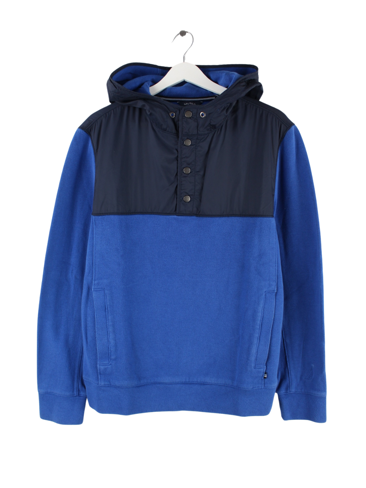 Hoodie aus dem Hause Nautica in Größe L. Er ist aus einer Baumwollmischung hergestellt und in Blau vorrätig.
