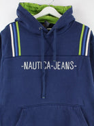 Hoodie vom Label Nautica mit Stickereien in Größe L. Er ist aus einer Baumwollmischung gefertigt und in Blau vorrätig.